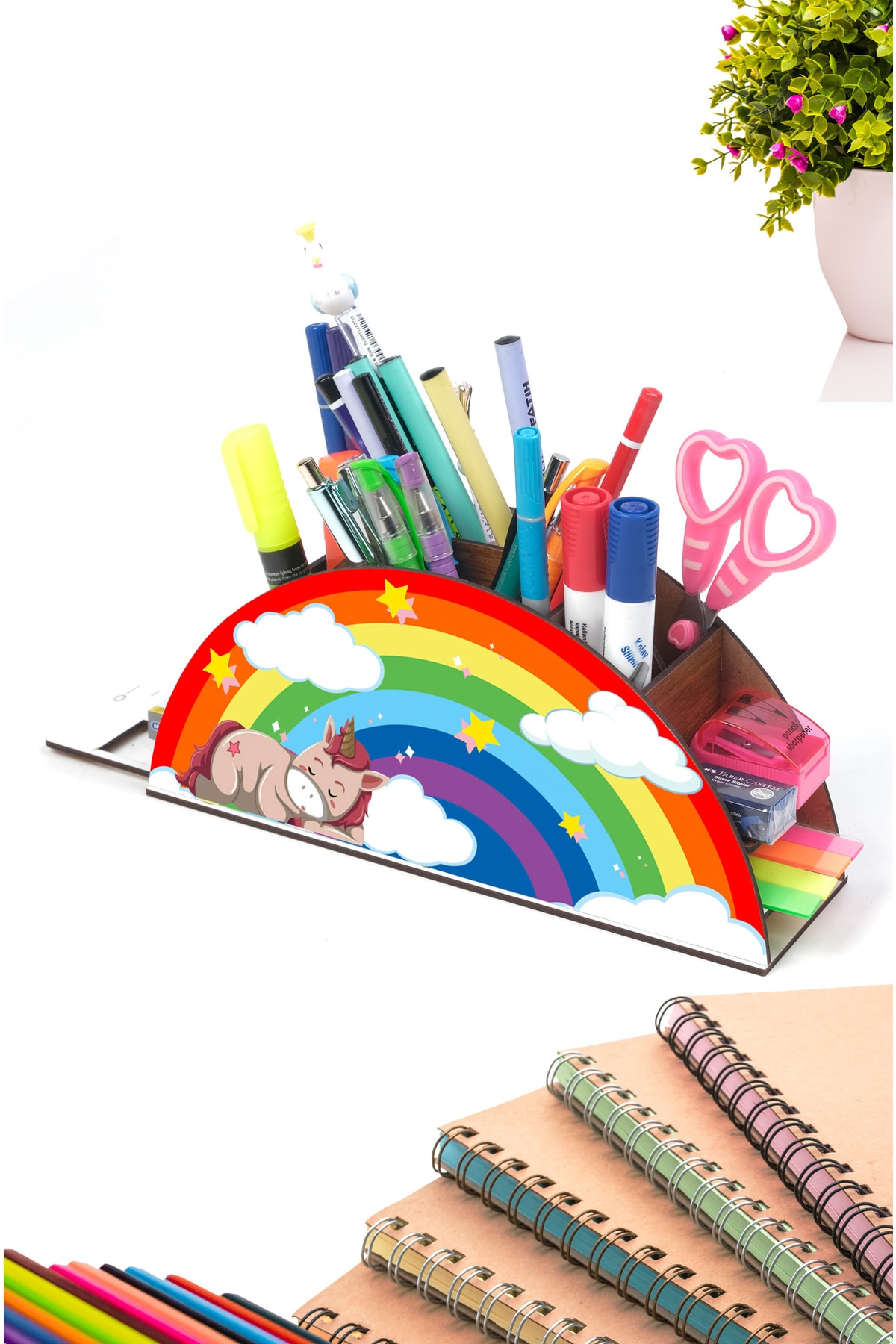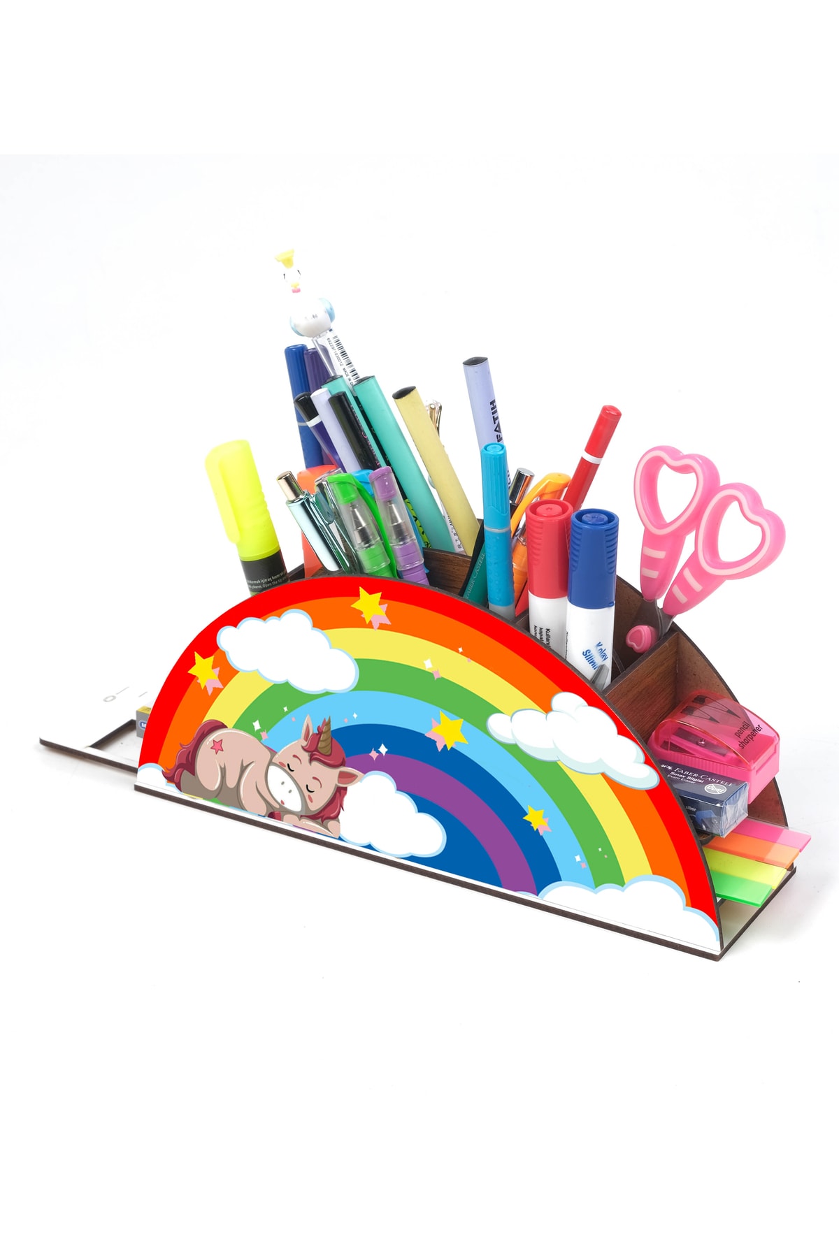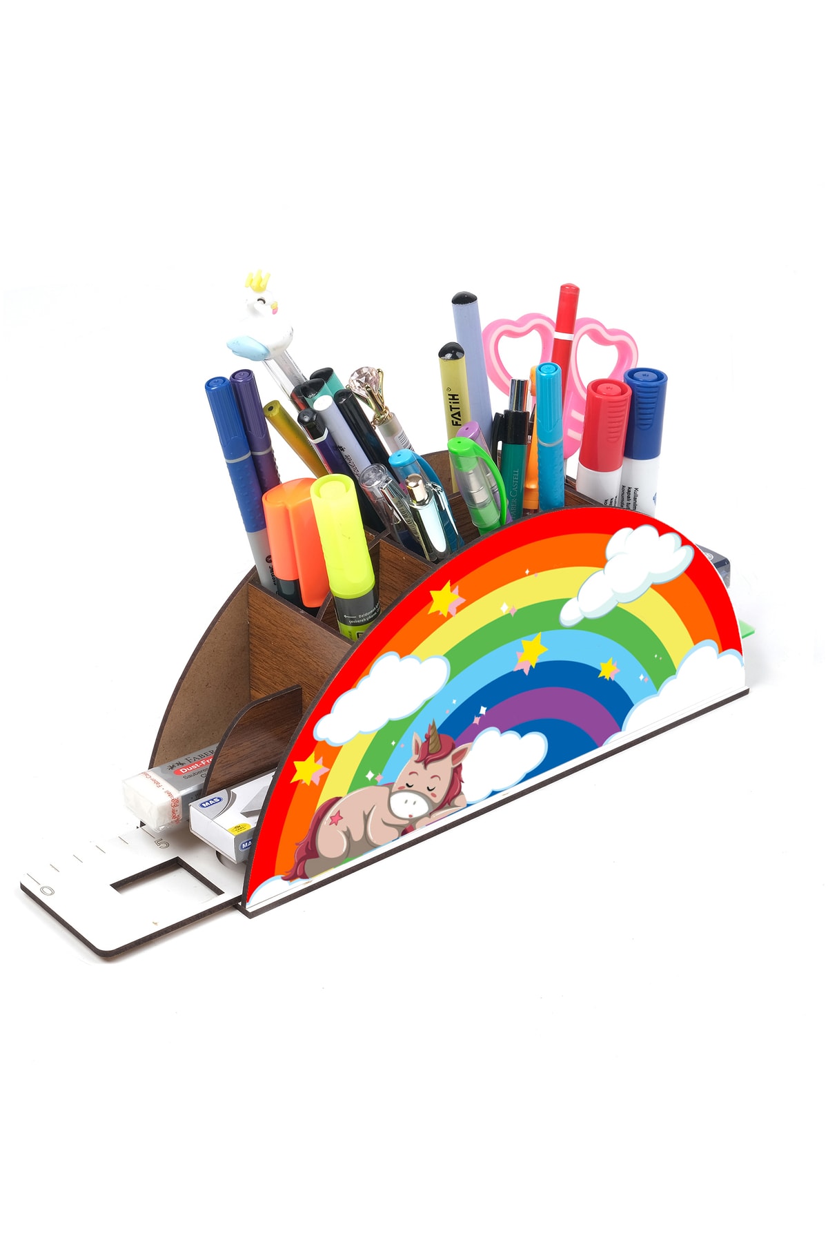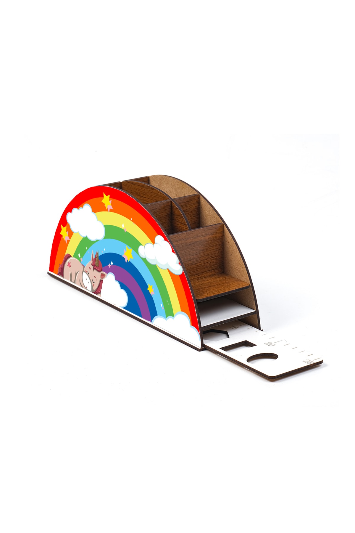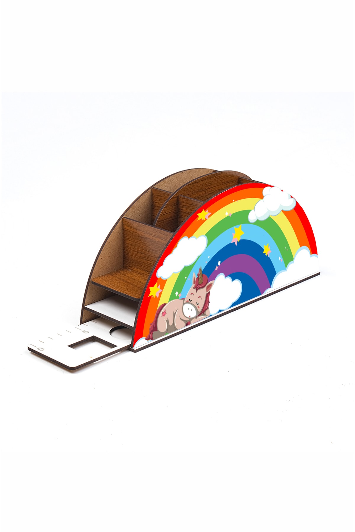 Ahşap Uyuyan Unicorn Gökkuşağı Cetvelli Masaüstü Kalemlik Kutu Çocuklar Için Organizer Gk3