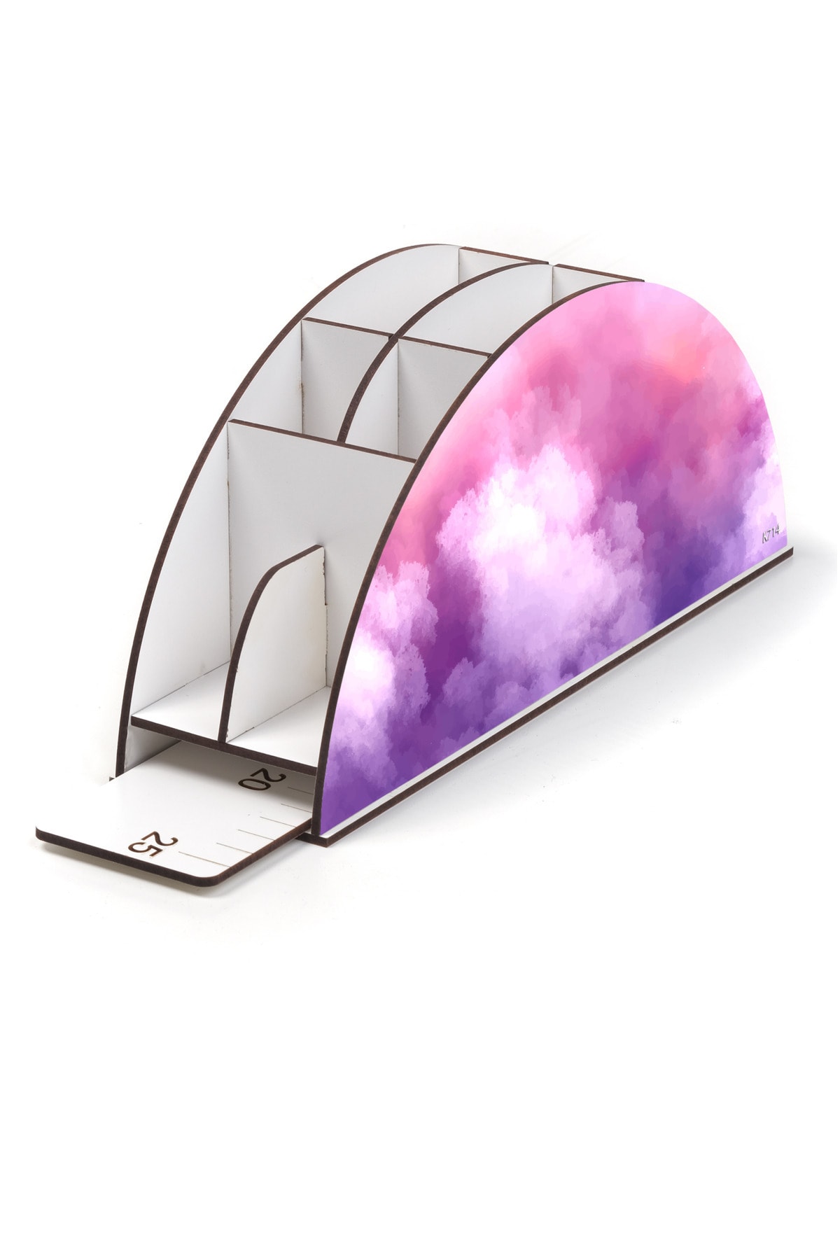 Ahşap VİP Aİ Model Serisi Gökkuşağı Cetvelli Masaüstü Kalemlik Organizer Montajlı Kutulu