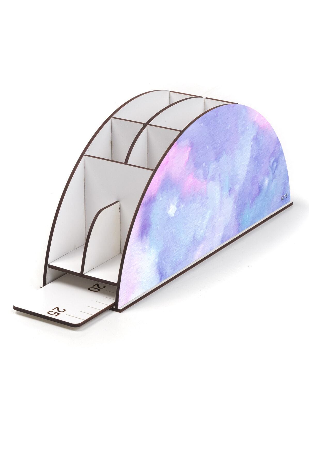 Ahşap VİP Aİ Model Serisi Gökkuşağı Cetvelli Masaüstü Kalemlik Organizer Montajlı Kutulu