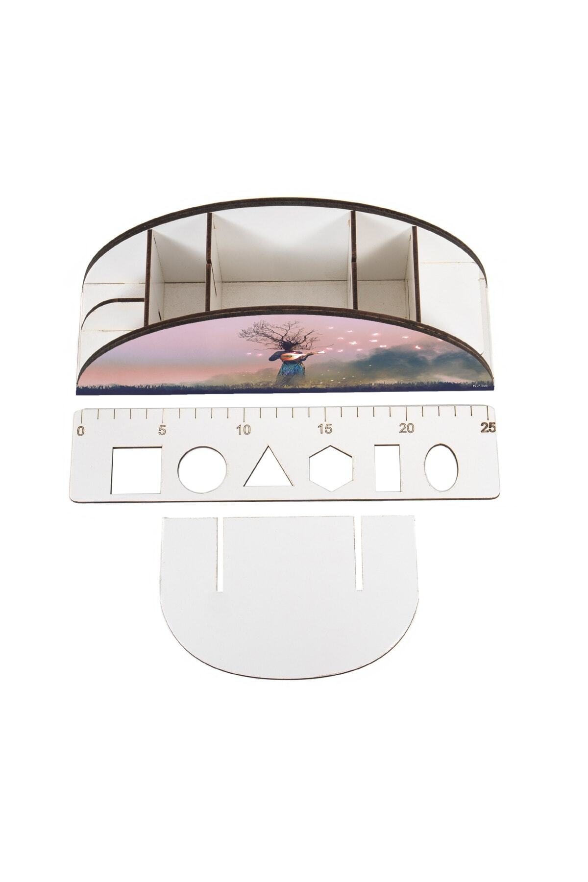 Ahşap VİP Aİ Model Serisi Gökkuşağı Cetvelli Masaüstü Kalemlik Organizer Montajlı Kutulu
