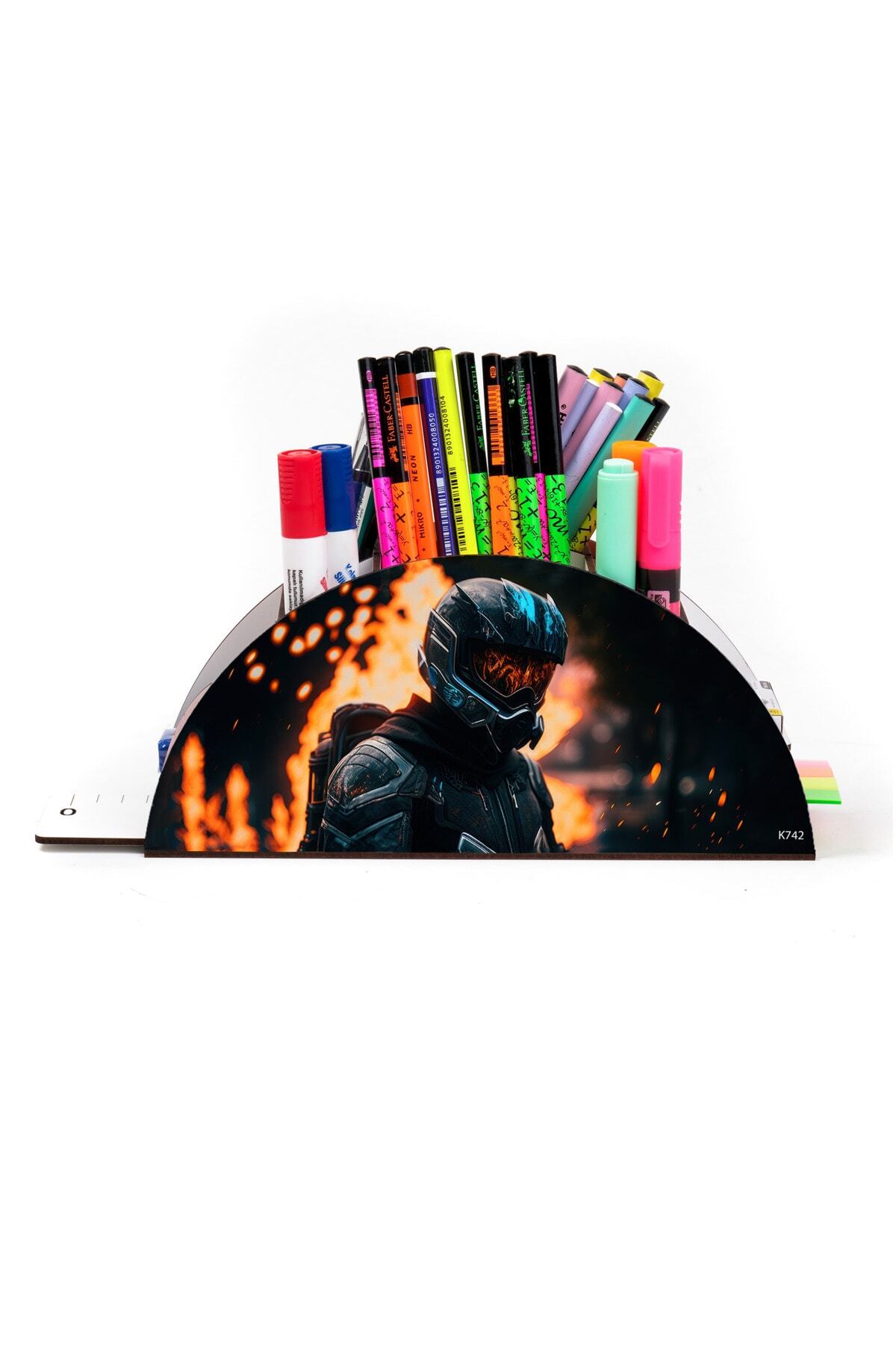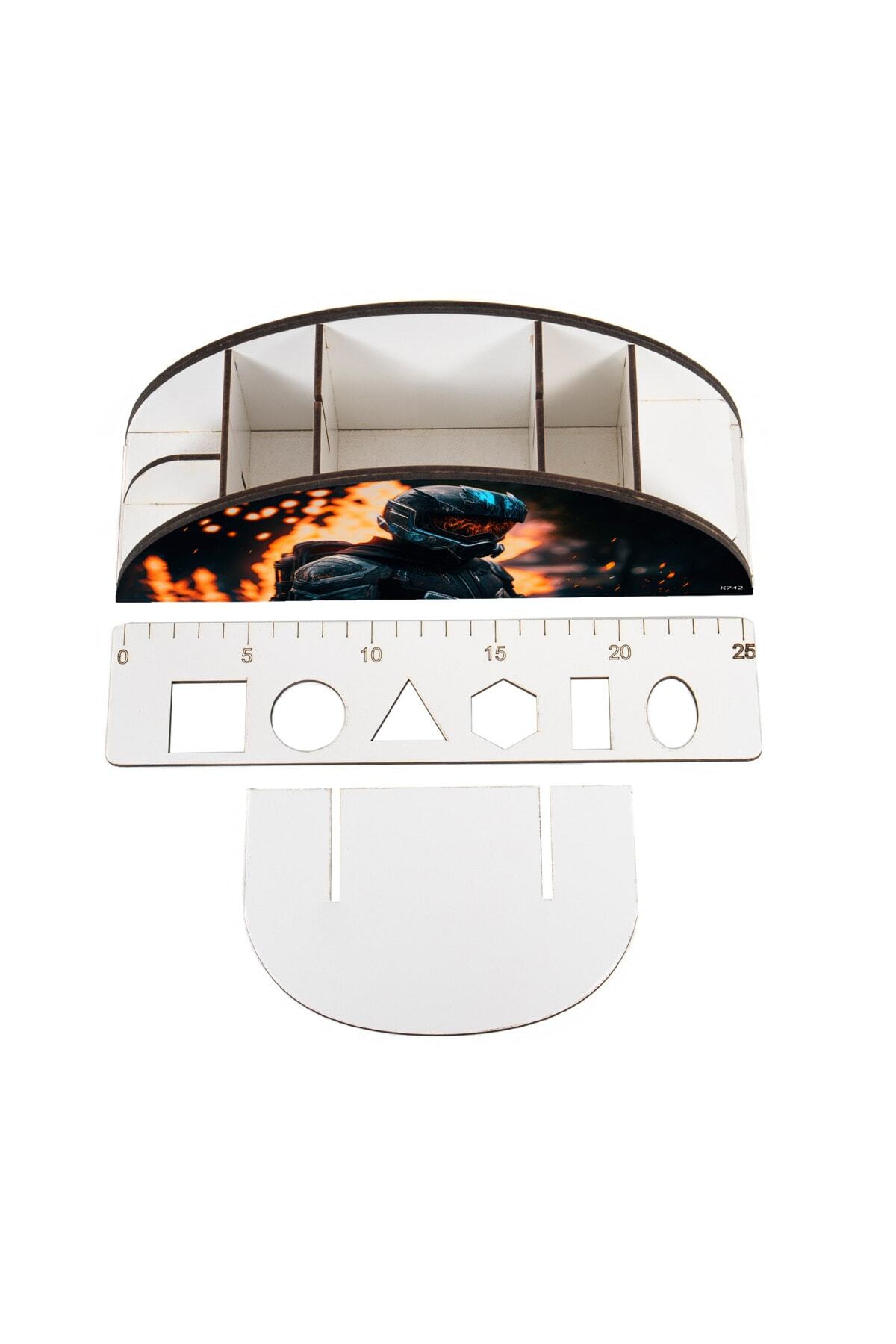 Ahşap VİP Aİ Model Serisi Gökkuşağı Cetvelli Masaüstü Kalemlik Organizer Montajlı Kutulu