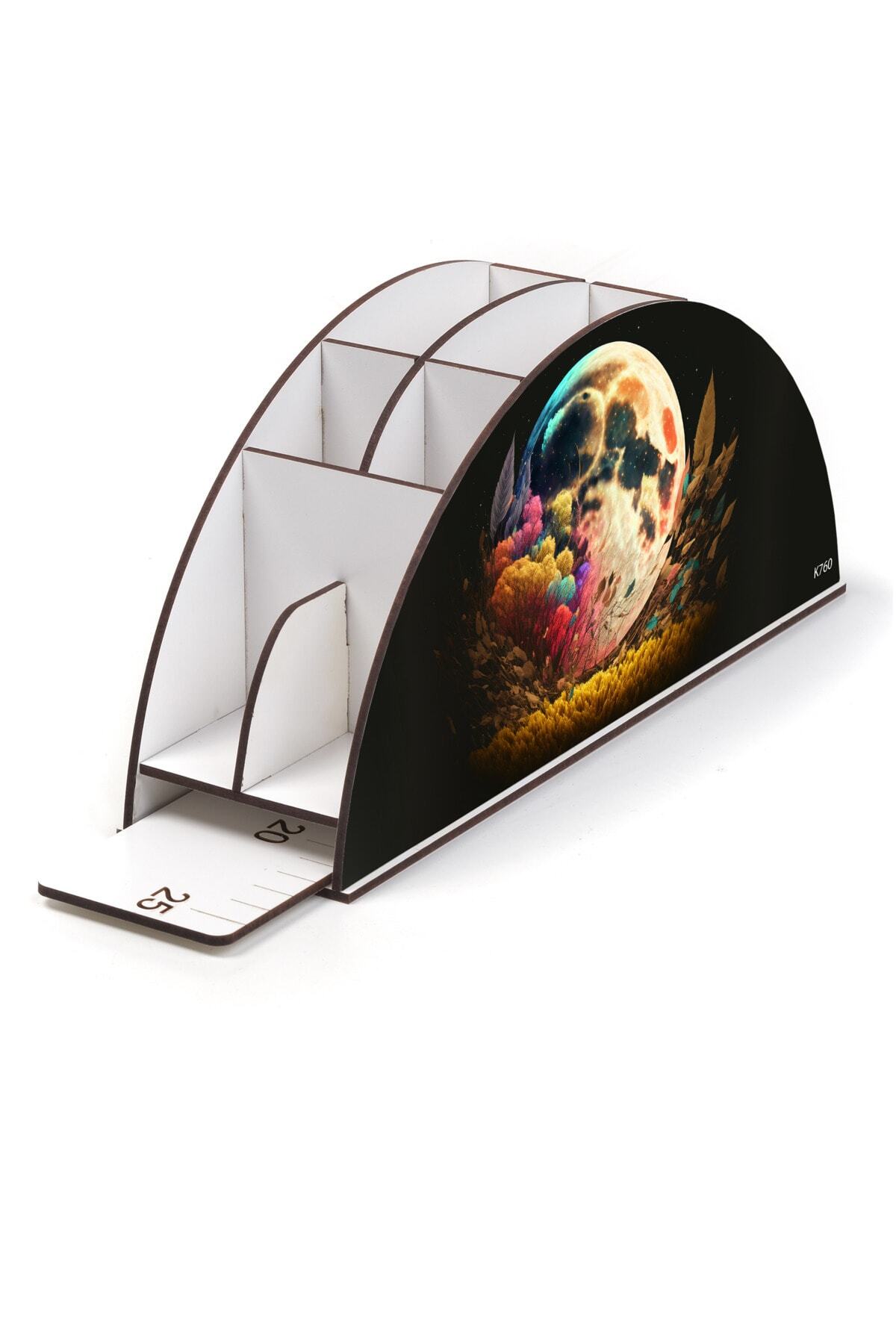 Ahşap VİP Aİ Model Serisi Gökkuşağı Cetvelli Masaüstü Kalemlik Organizer Montajlı Kutulu