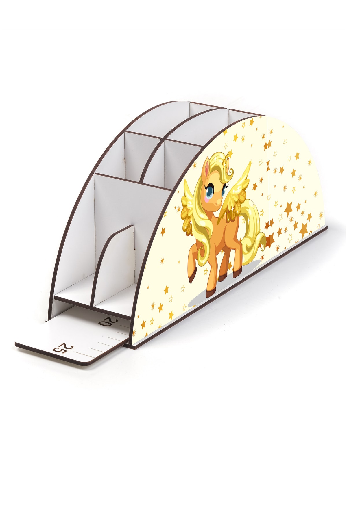 Ahşap Vip Altın Pony Gökkuşağı Cetvelli Masaüstü Kalemlik Çocuklar Için Organizer Vip9