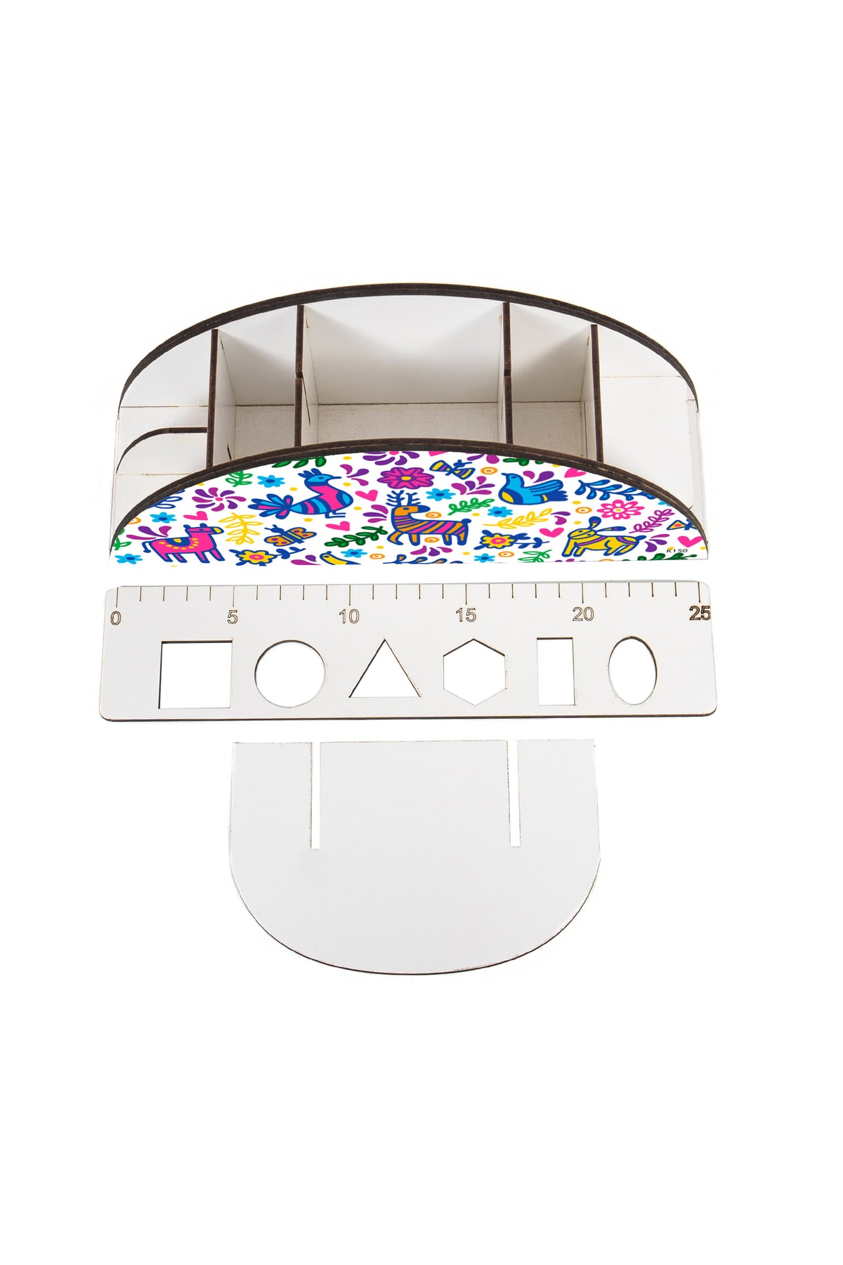 Ahşap Vip Animals Gökkuşağı Cetvelli Masaüstü Kalemlik Çocuklar Için Organizer Montajlı Kutulu