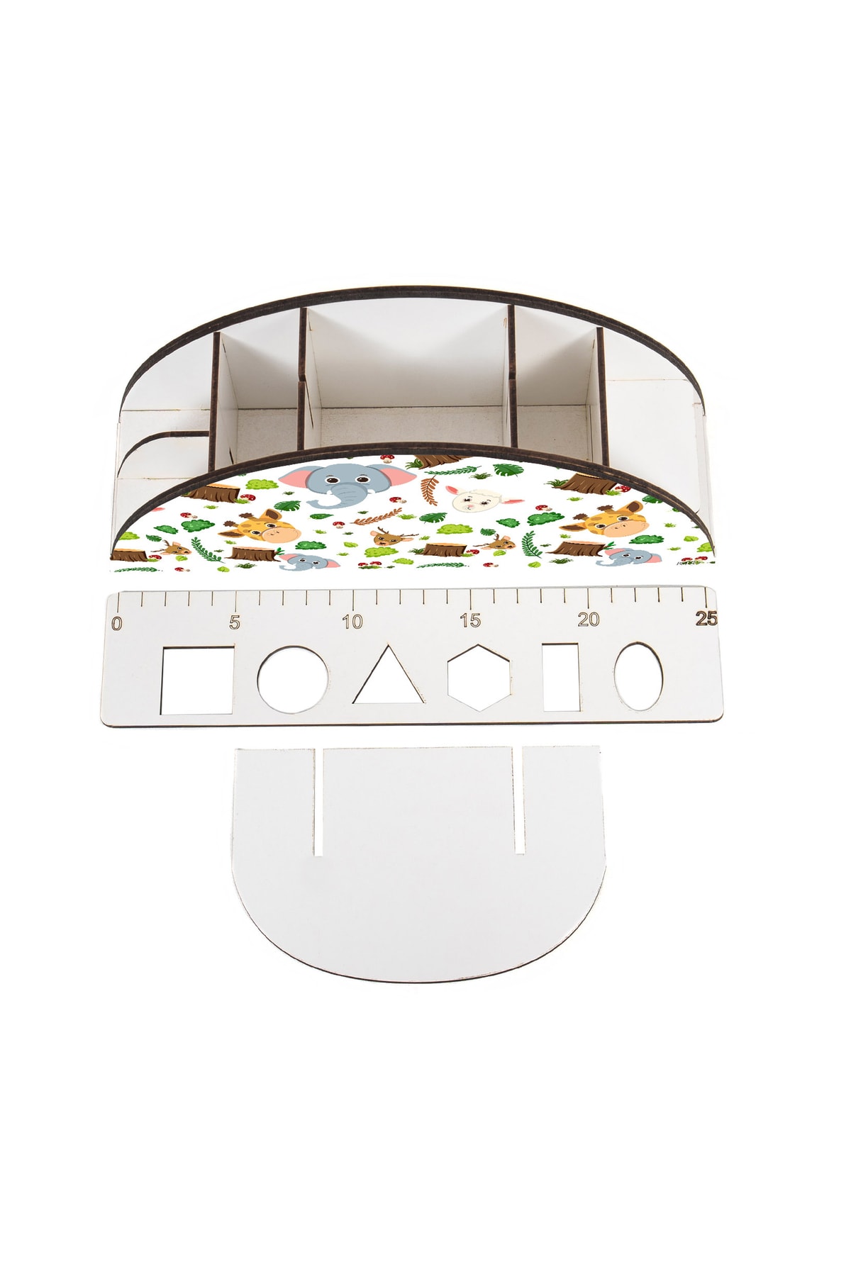 Ahşap Vip Animals Gökkuşağı Cetvelli Masaüstü Kalemlik Çocuklar Için Organizer Montajlı Kutulu