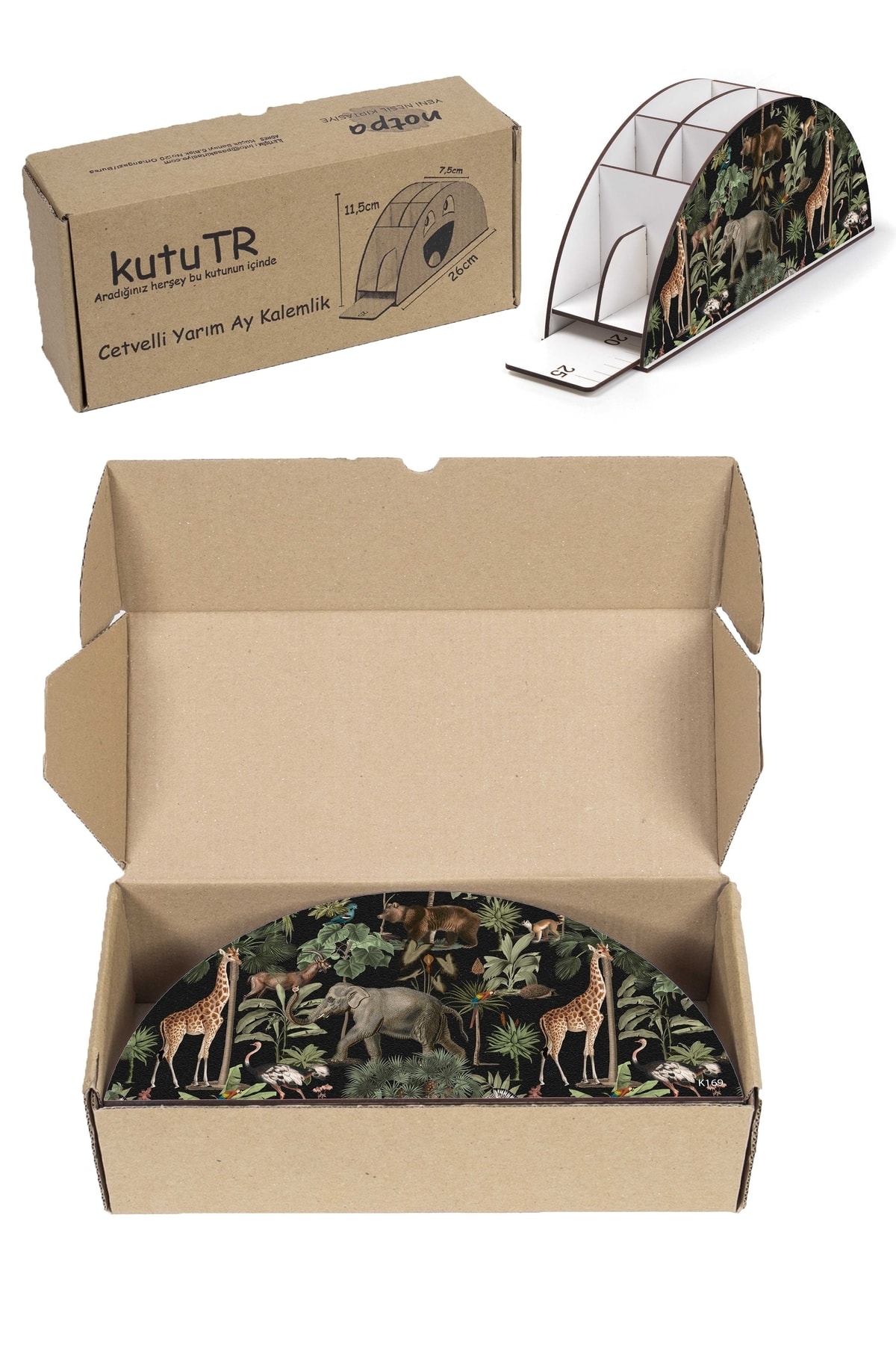 Ahşap Vip Animals Gökkuşağı Cetvelli Masaüstü Kalemlik Organizer Montajlı Kutulu