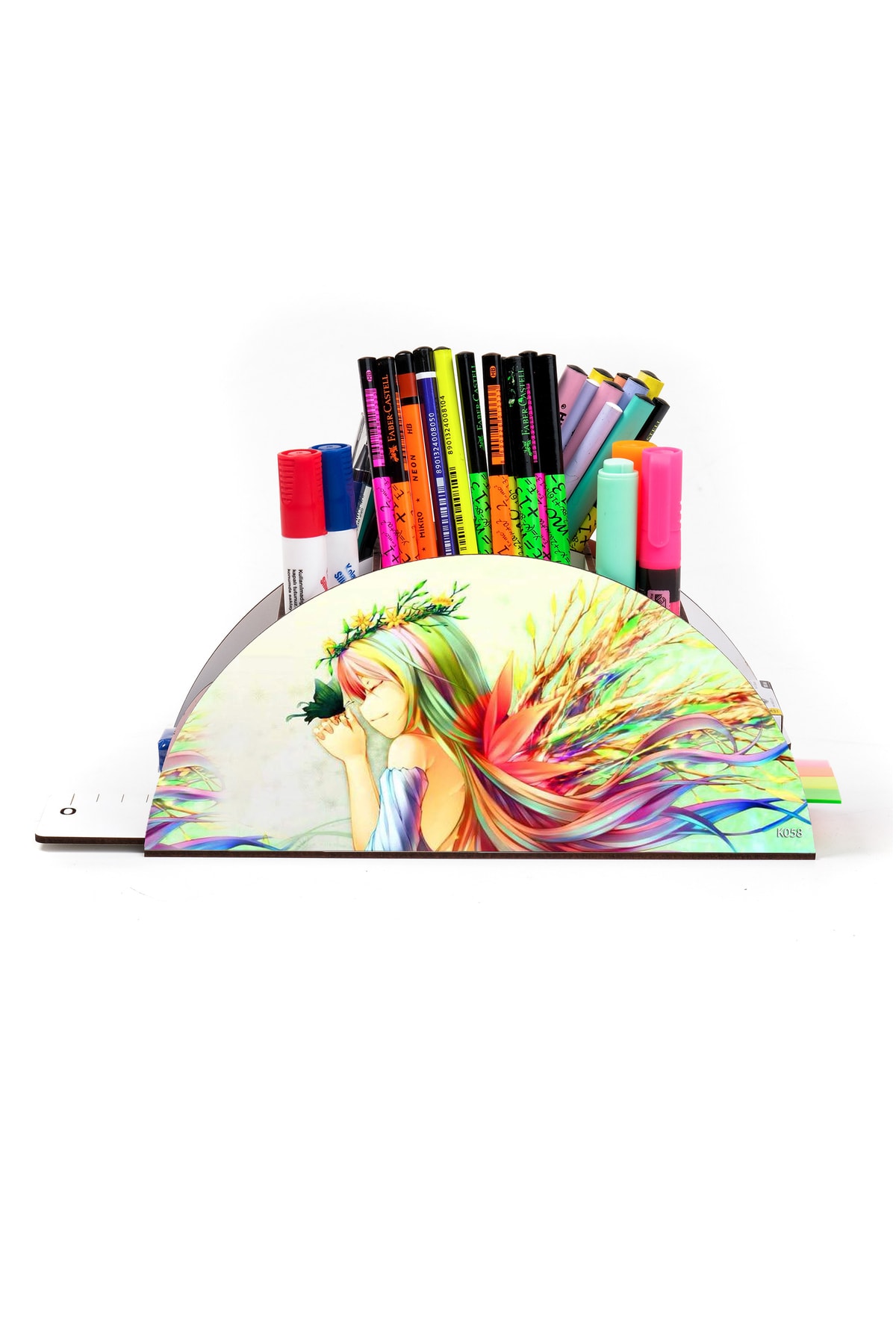 Ahşap Vip Anime Serisi Gökkuşağı Cetvelli Masaüstü Kalemlik Çocuklar Için Organizer Montajlı Kutulu