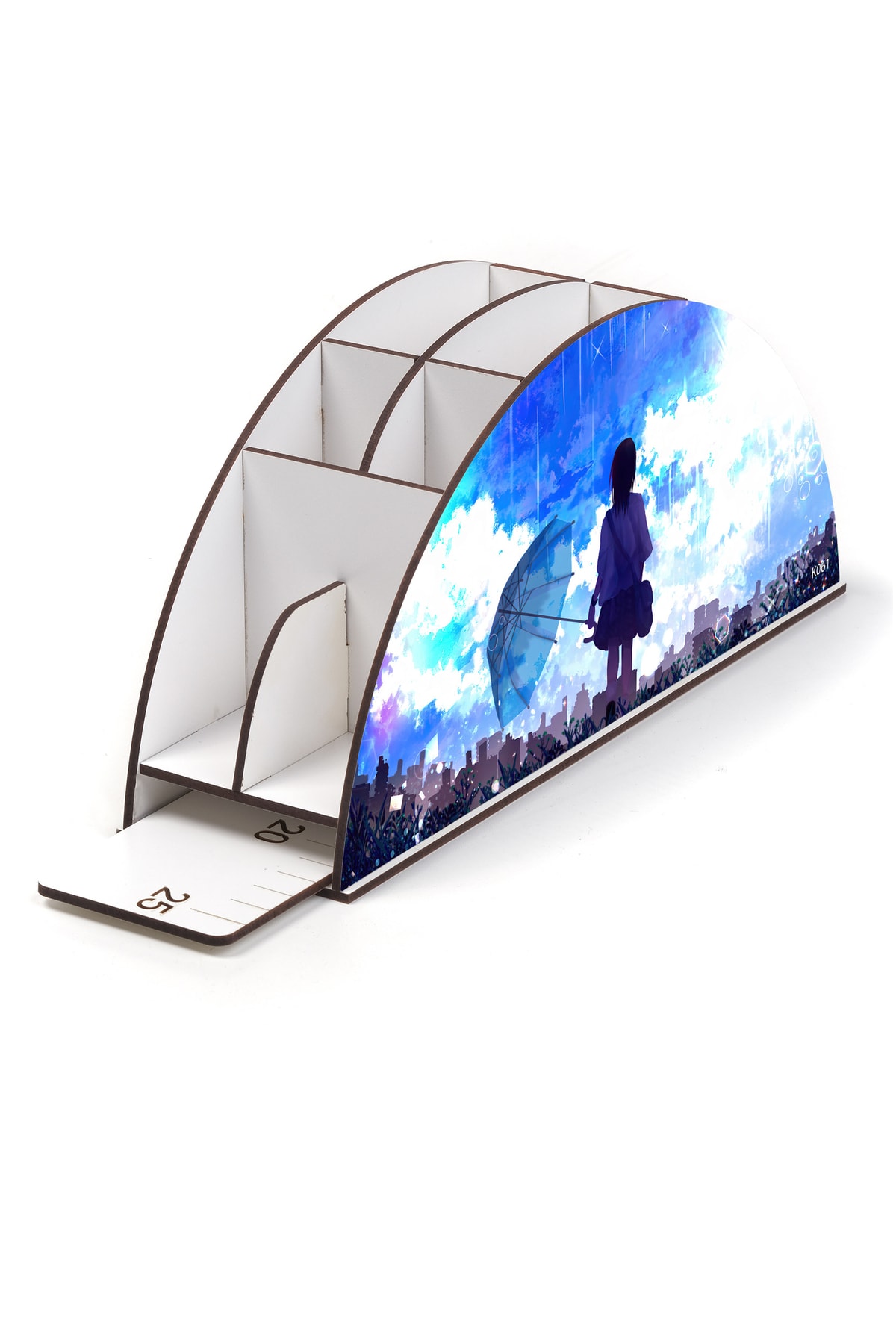 Ahşap Vip Anime Serisi Gökkuşağı Cetvelli Masaüstü Kalemlik Çocuklar Için Organizer Montajlı Kutulu