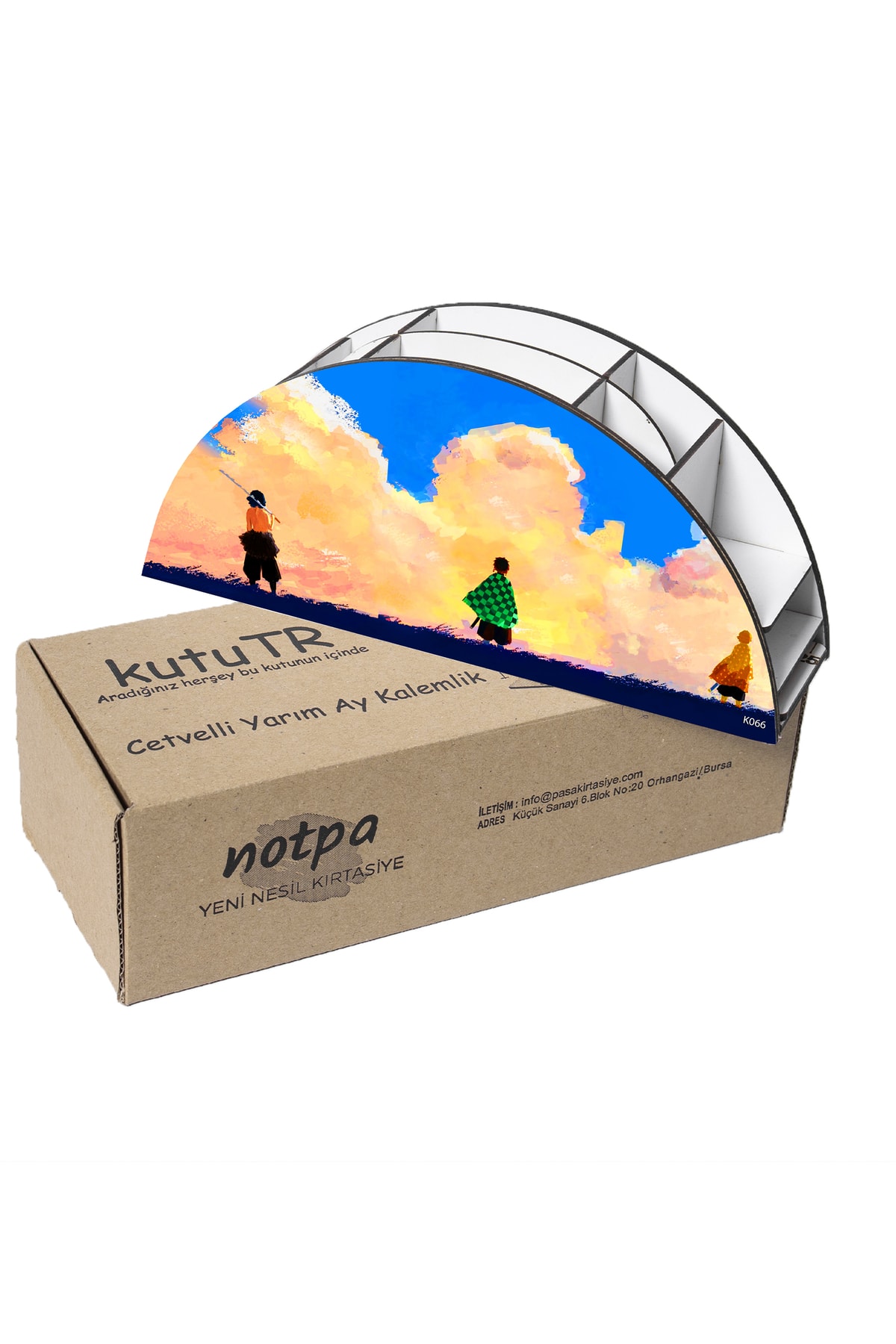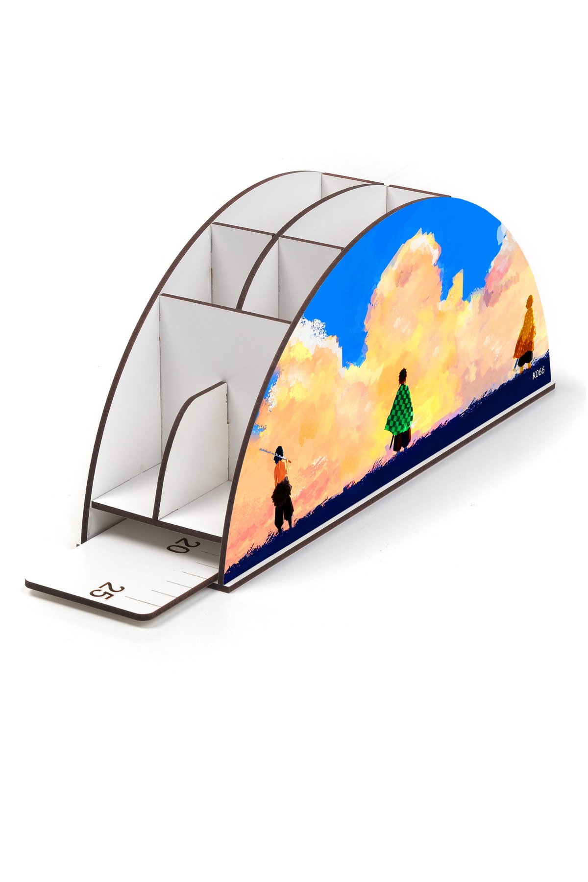 Ahşap Vip Anime Serisi Gökkuşağı Cetvelli Masaüstü Kalemlik Organizer Montajlı Kutulu