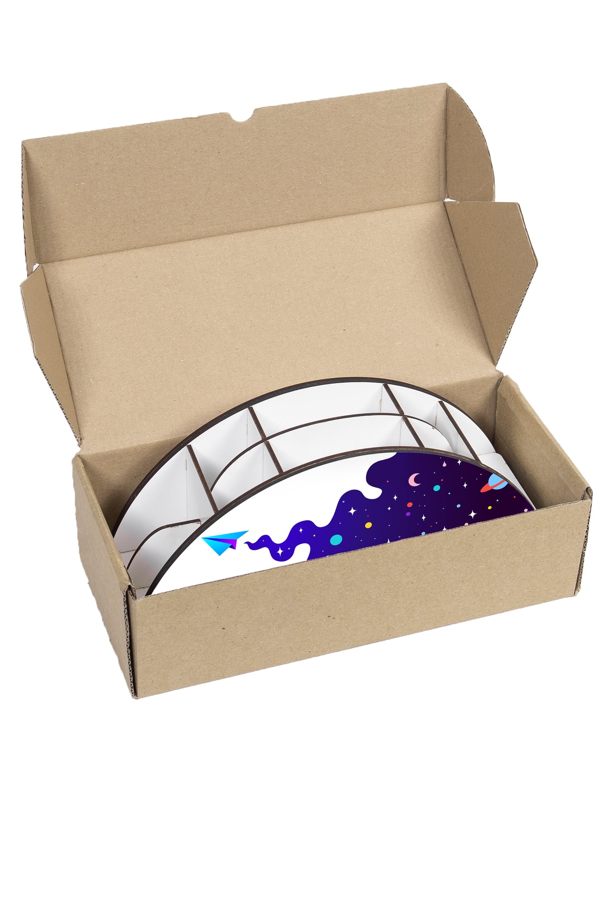 Ahşap Vip Astronot Ve Uzay Gökkuşağı Cetvelli Masaüstü Kalemlik Organizer Montajlı Kutulu