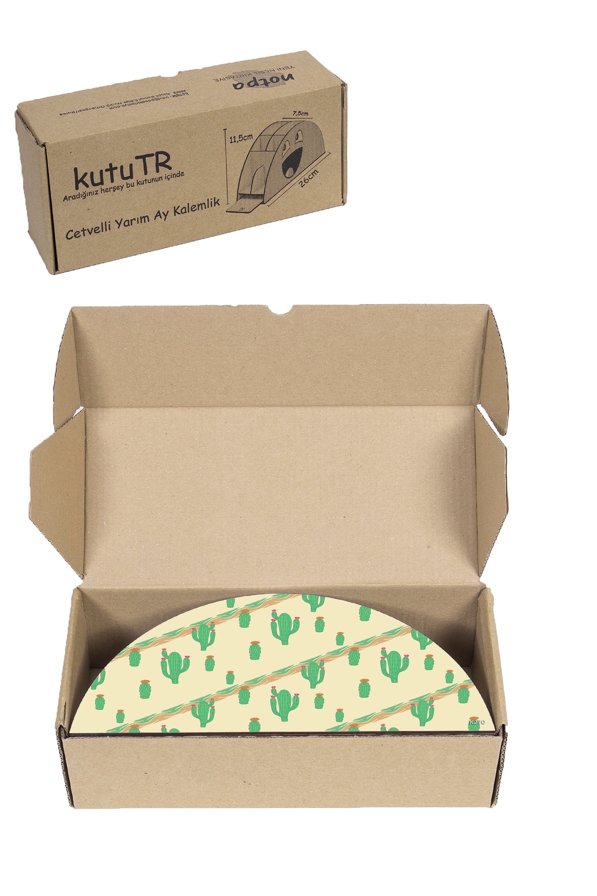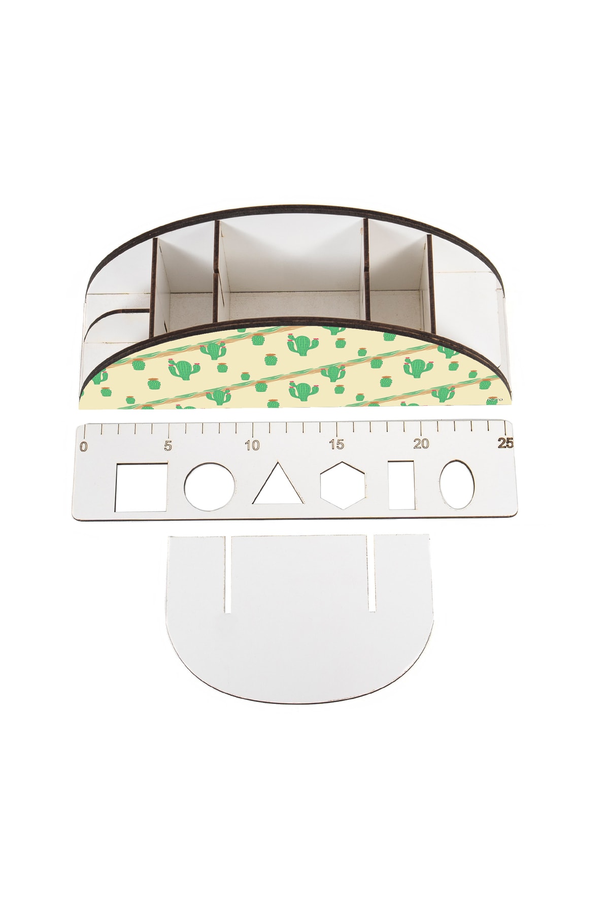 Ahşap Vip Bitki Serisi Gökkuşağı Cetvelli Masaüstü Kalemlik Organizer Montajlı Kutulu