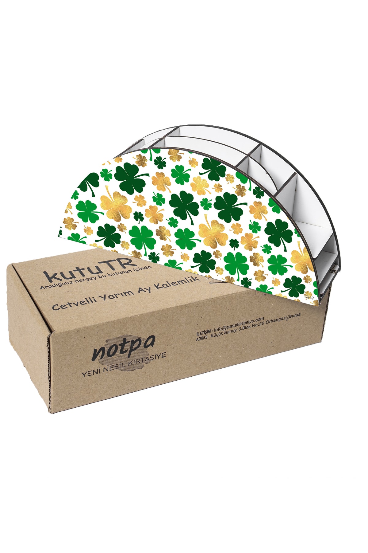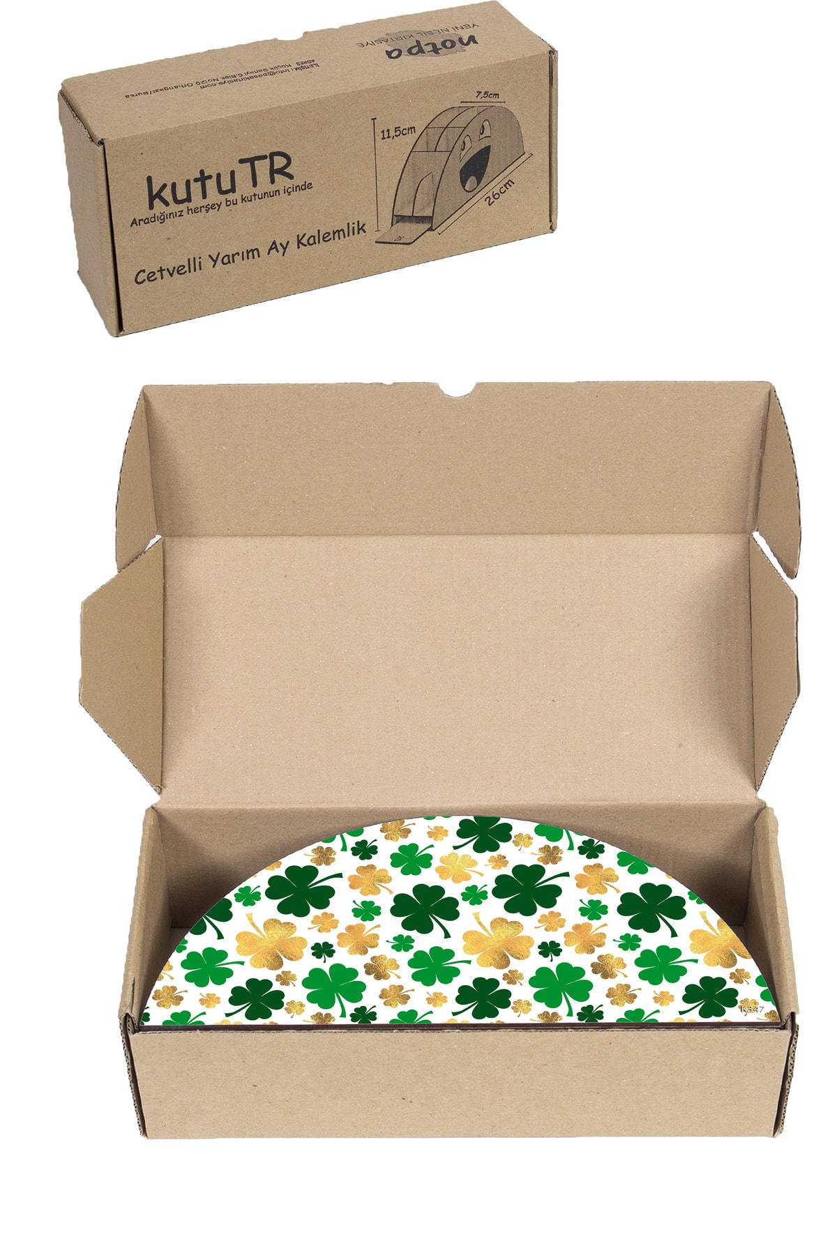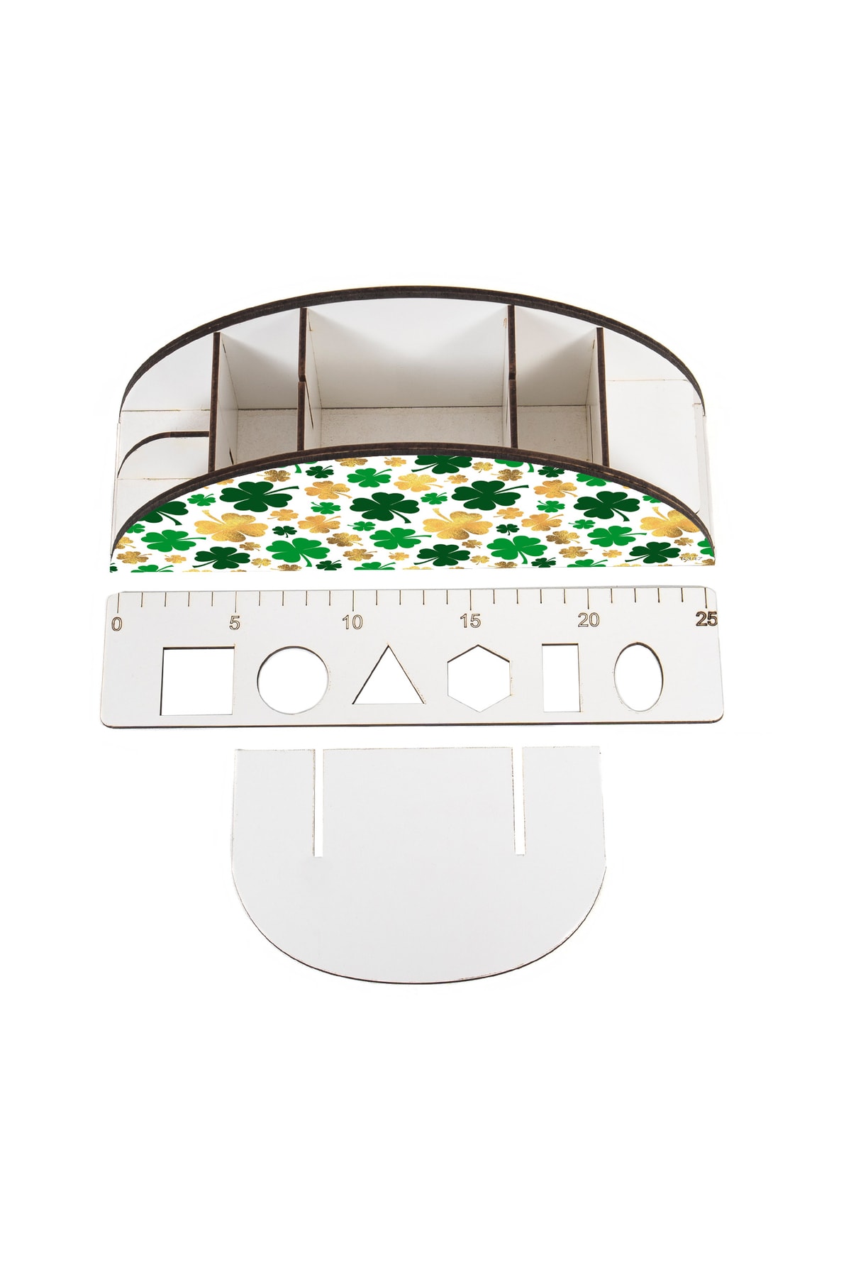 Ahşap Vip Bitki Serisi Gökkuşağı Cetvelli Masaüstü Kalemlik Organizer Montajlı Kutulu