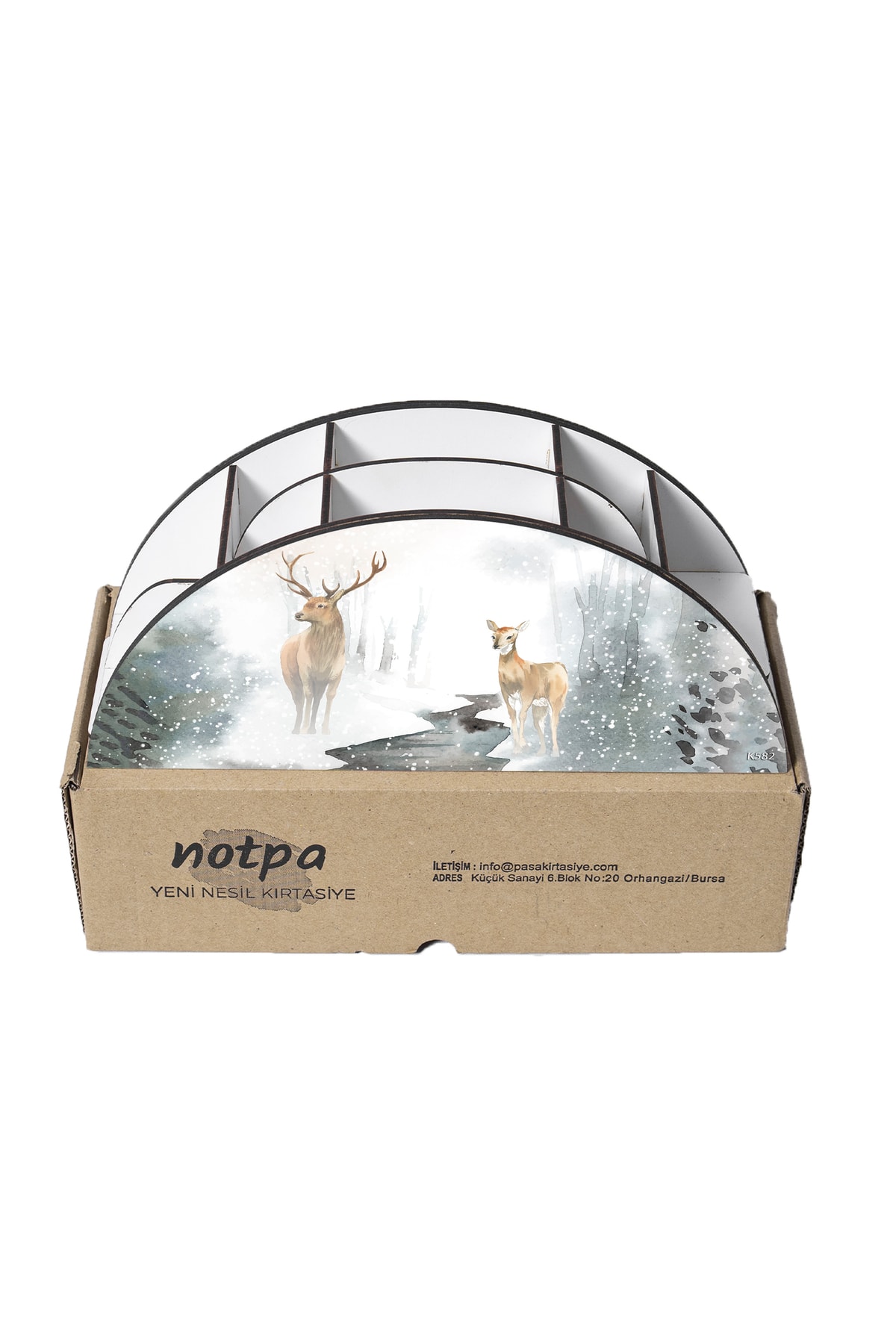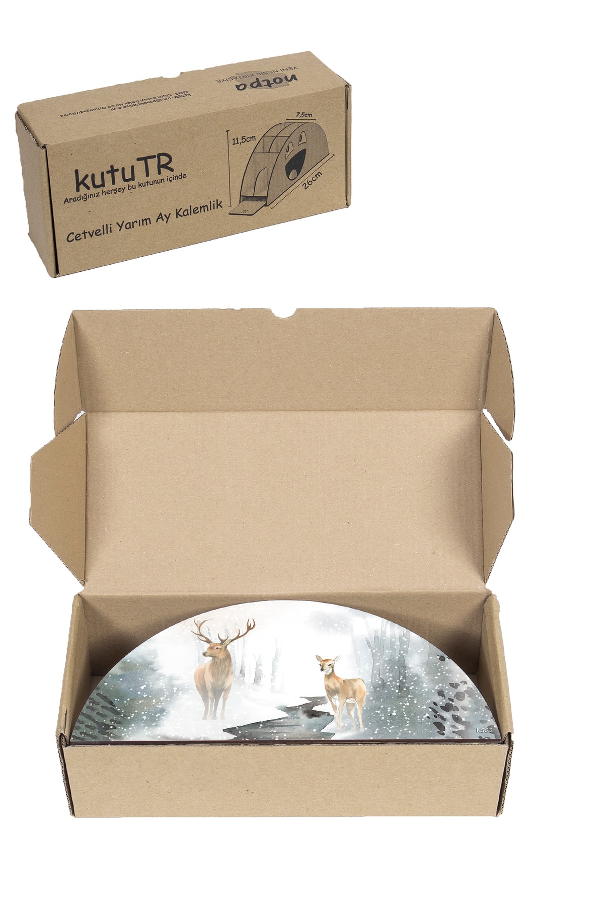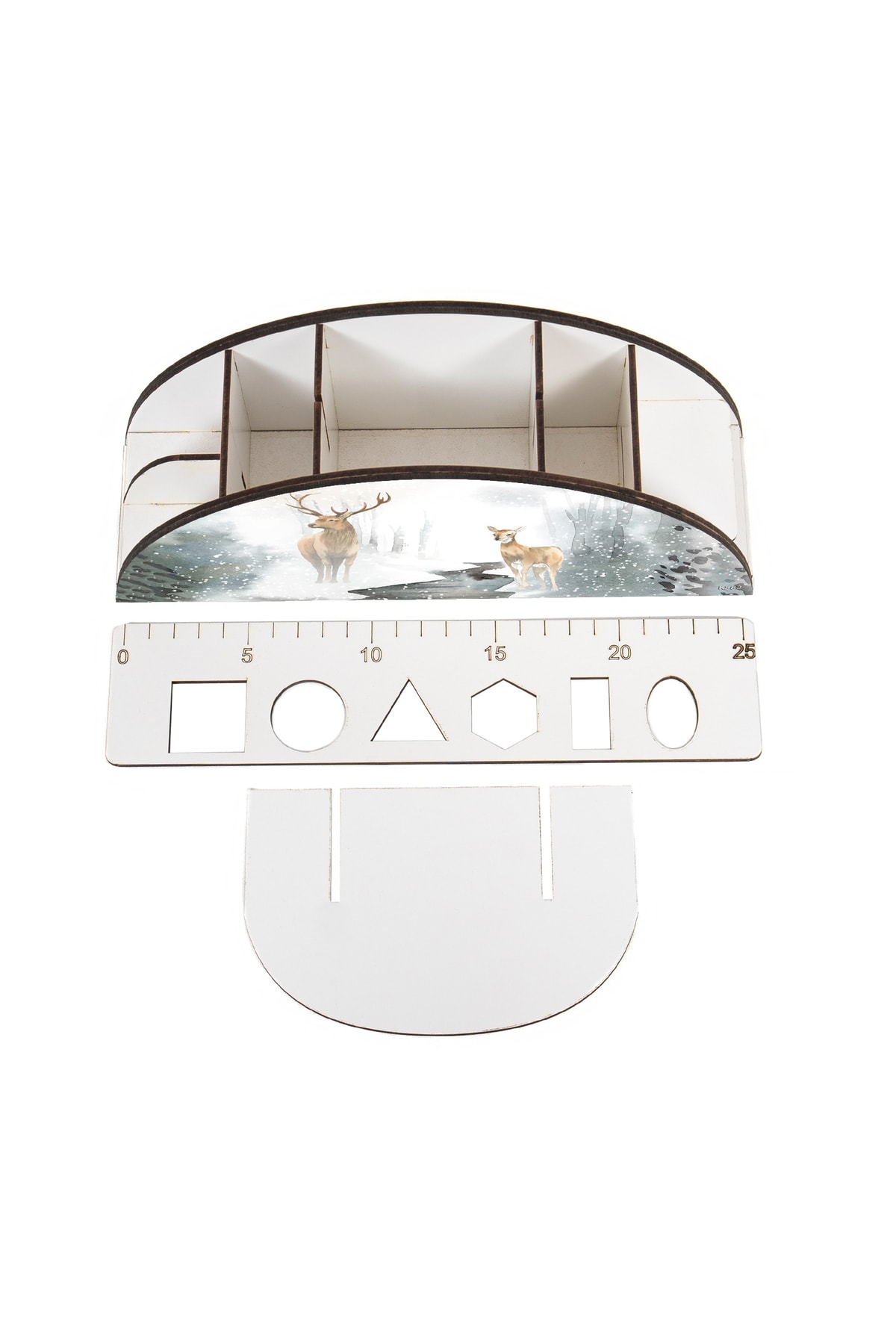 Ahşap Vip Canlılar Gökkuşağı Cetvelli Masaüstü Kalemlik Organizer Montajlı Kutulu