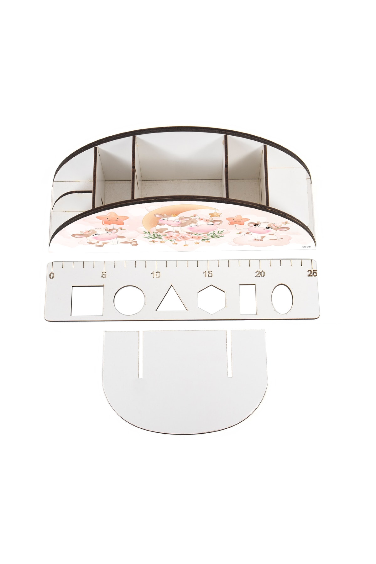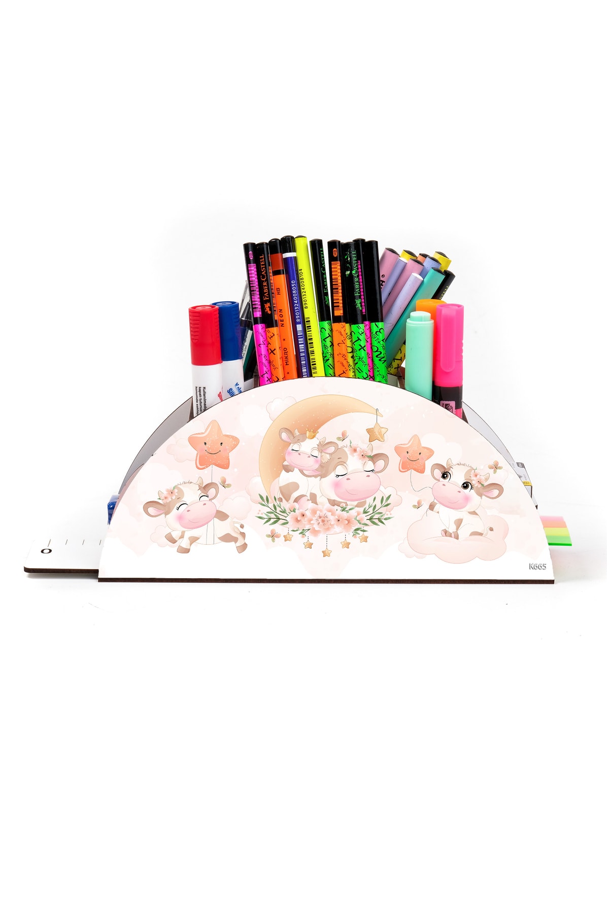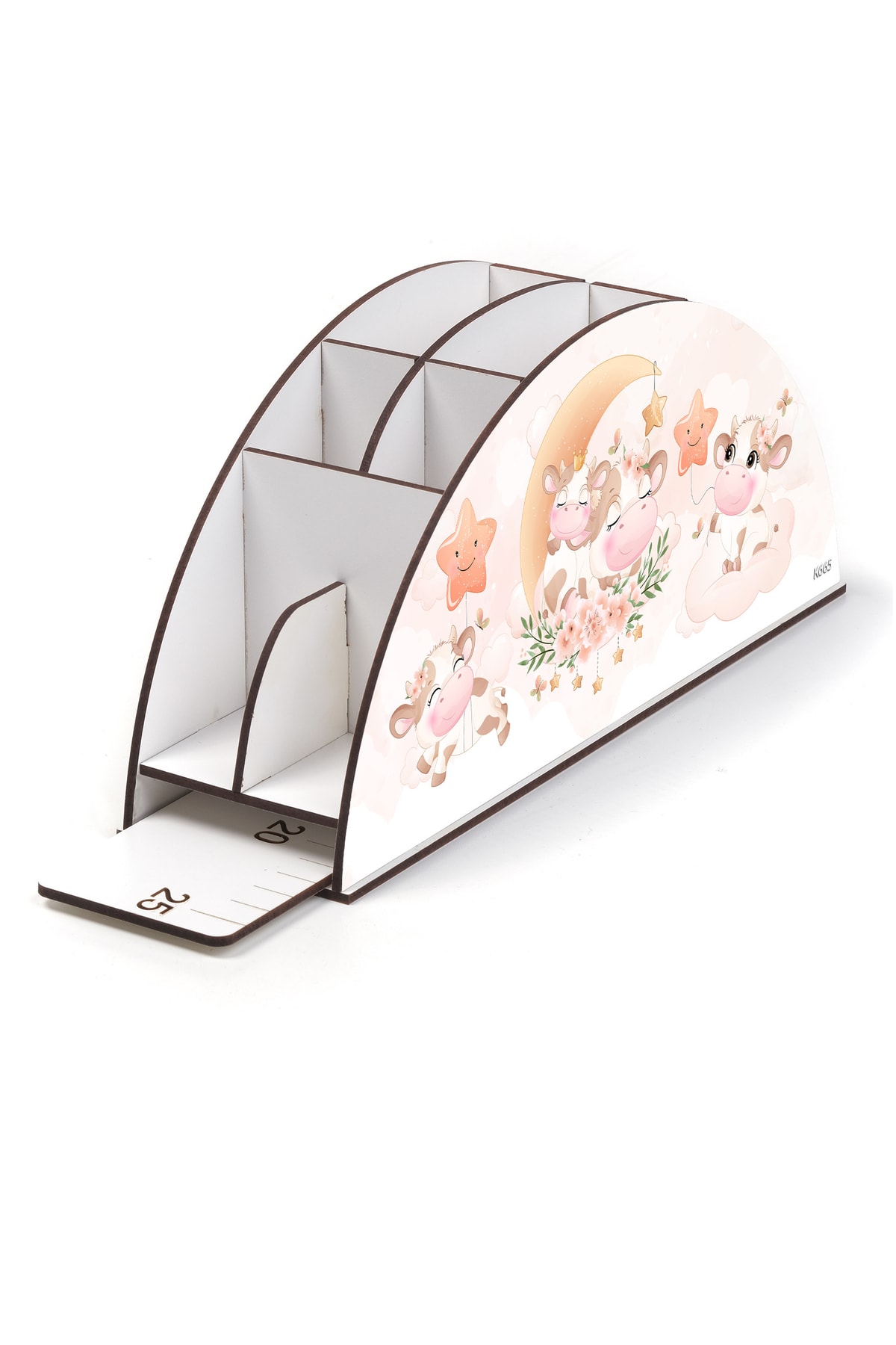 Ahşap Vip Canlılar Gökkuşağı Cetvelli Masaüstü Kalemlik Organizer Montajlı Kutulu