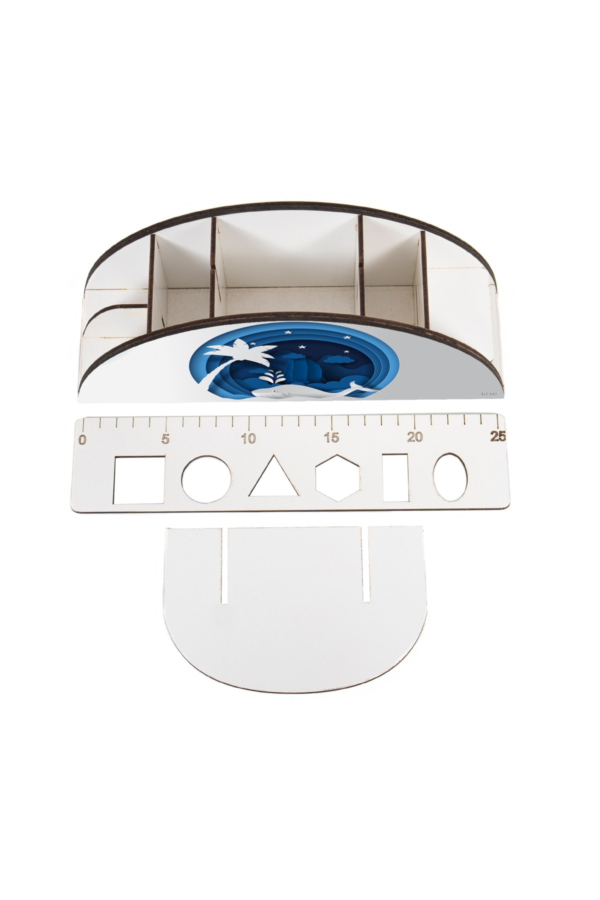Ahşap VİP Canlılar Serisi Gökkuşağı Cetvelli Masaüstü Kalemlik Organizer Montajlı Kutulu