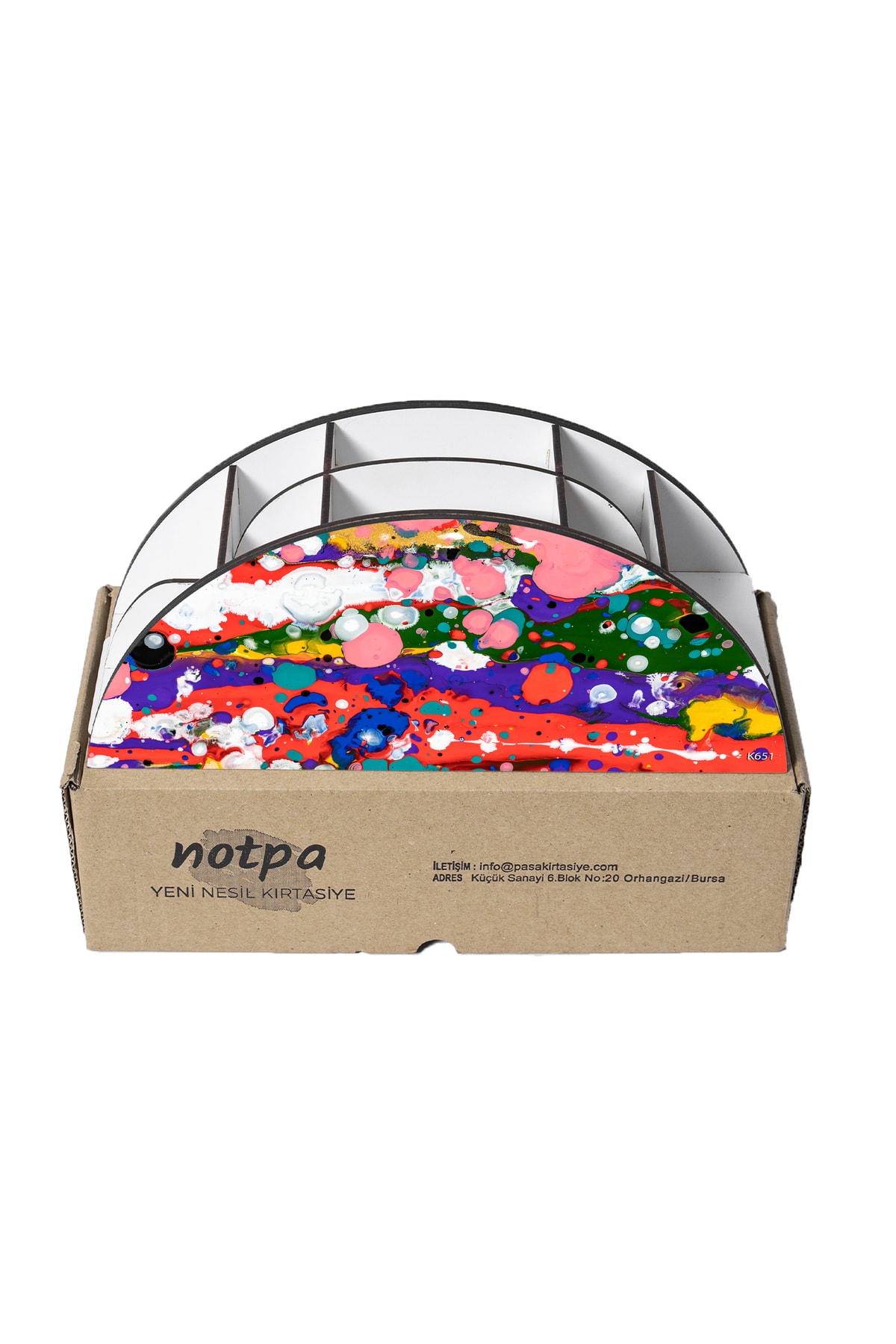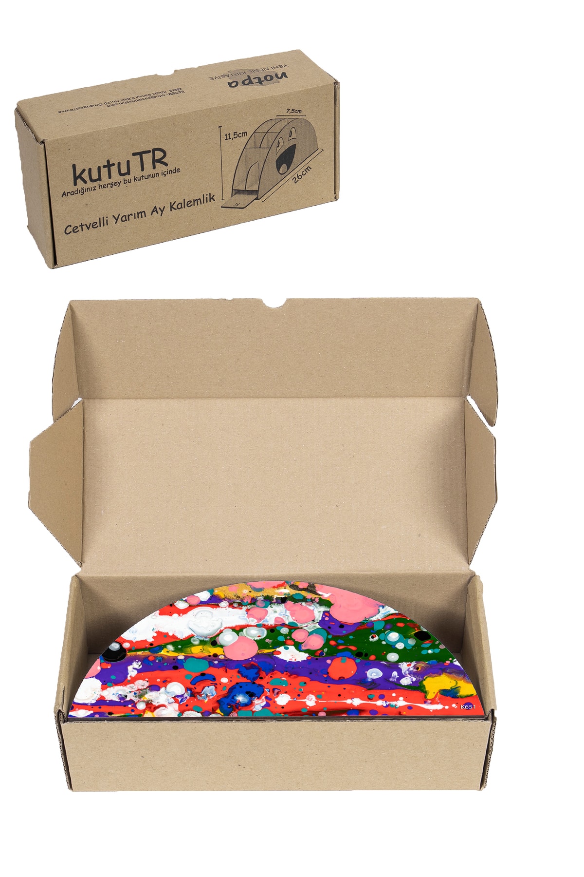 Ahşap Vip Çeşitli Desenler Gökkuşağı Cetvelli Masaüstü Kalemlik Organizer Montajlı Kutulu