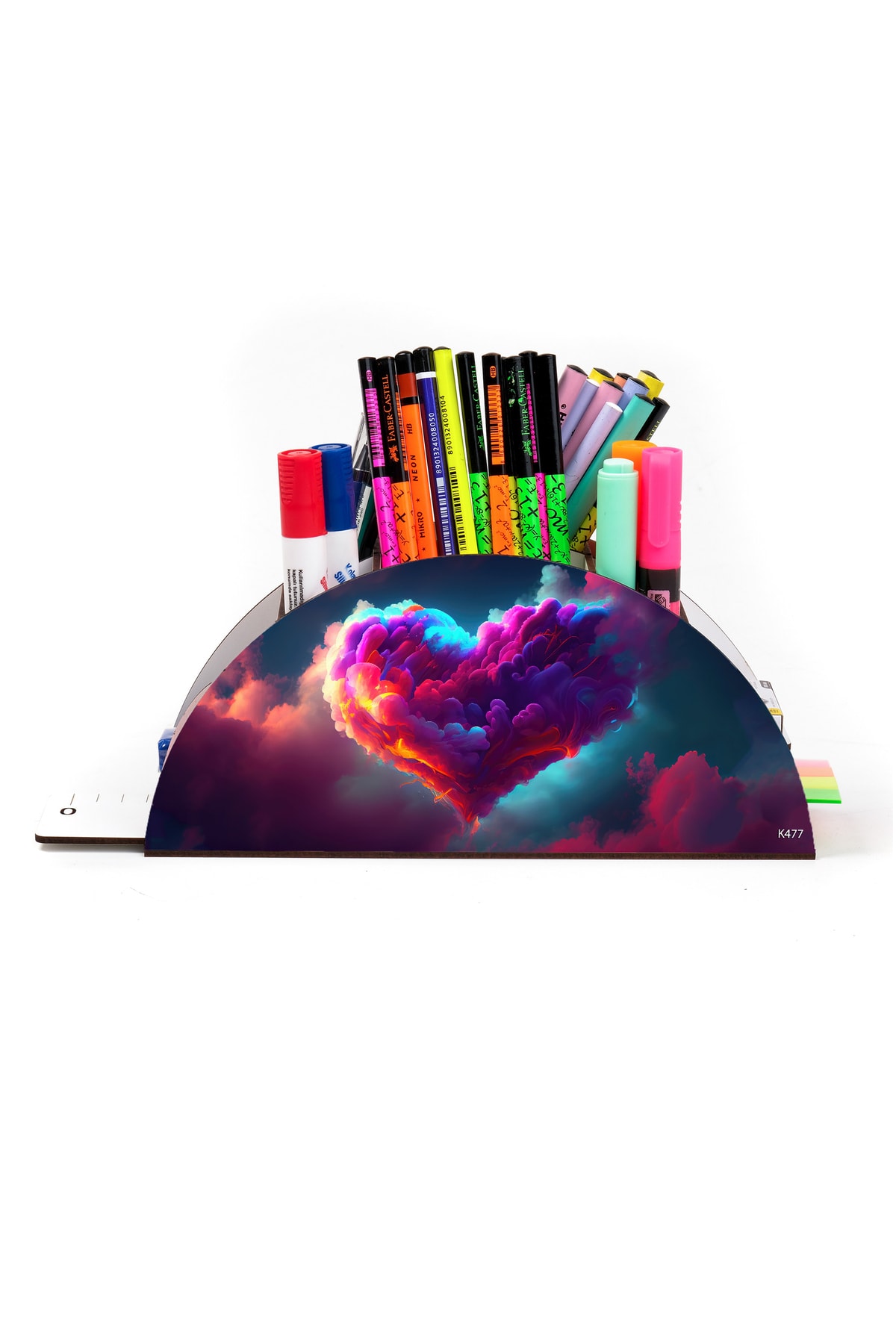 Ahşap Vip Çeşitli Model Gökkuşağı Cetvelli Masaüstü Kalemlik Organizer Montajlı Kutulu