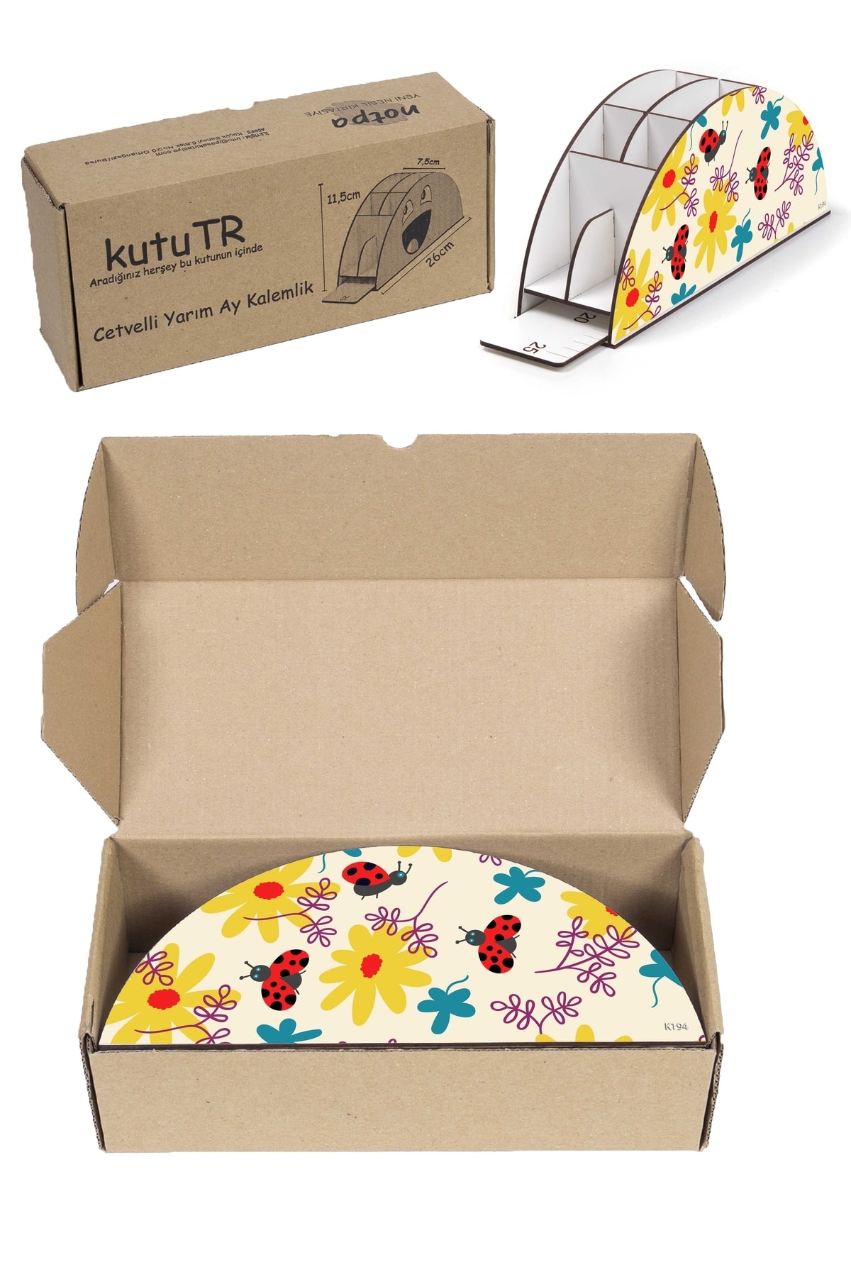 Ahşap Vip Çiçek Serisi Gökkuşağı Cetvelli Masaüstü Kalemlik Çocuklar Için Organizer Montajlı Kutulu