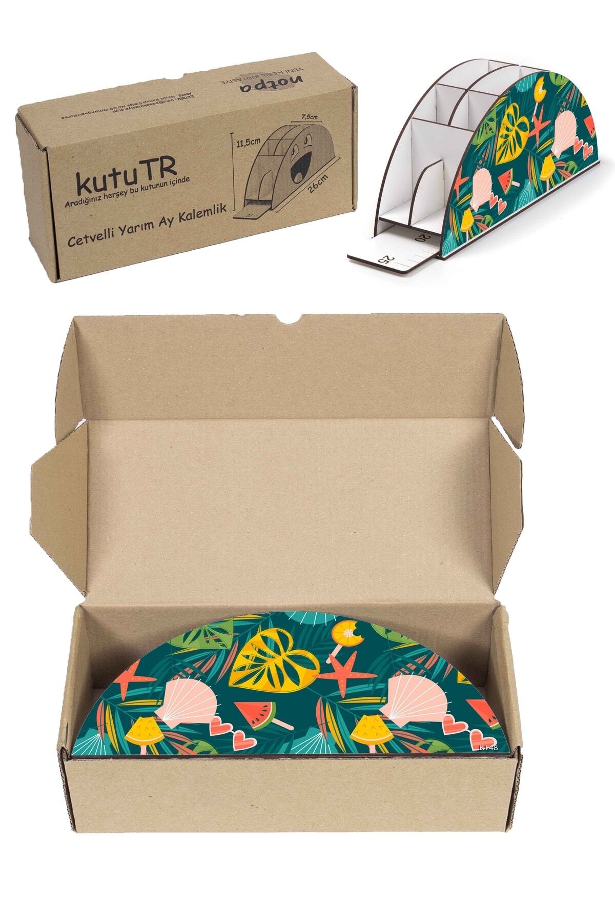 Ahşap Vip Çiçek Serisi Gökkuşağı Cetvelli Masaüstü Kalemlik Organizer Montajlı Kutulu