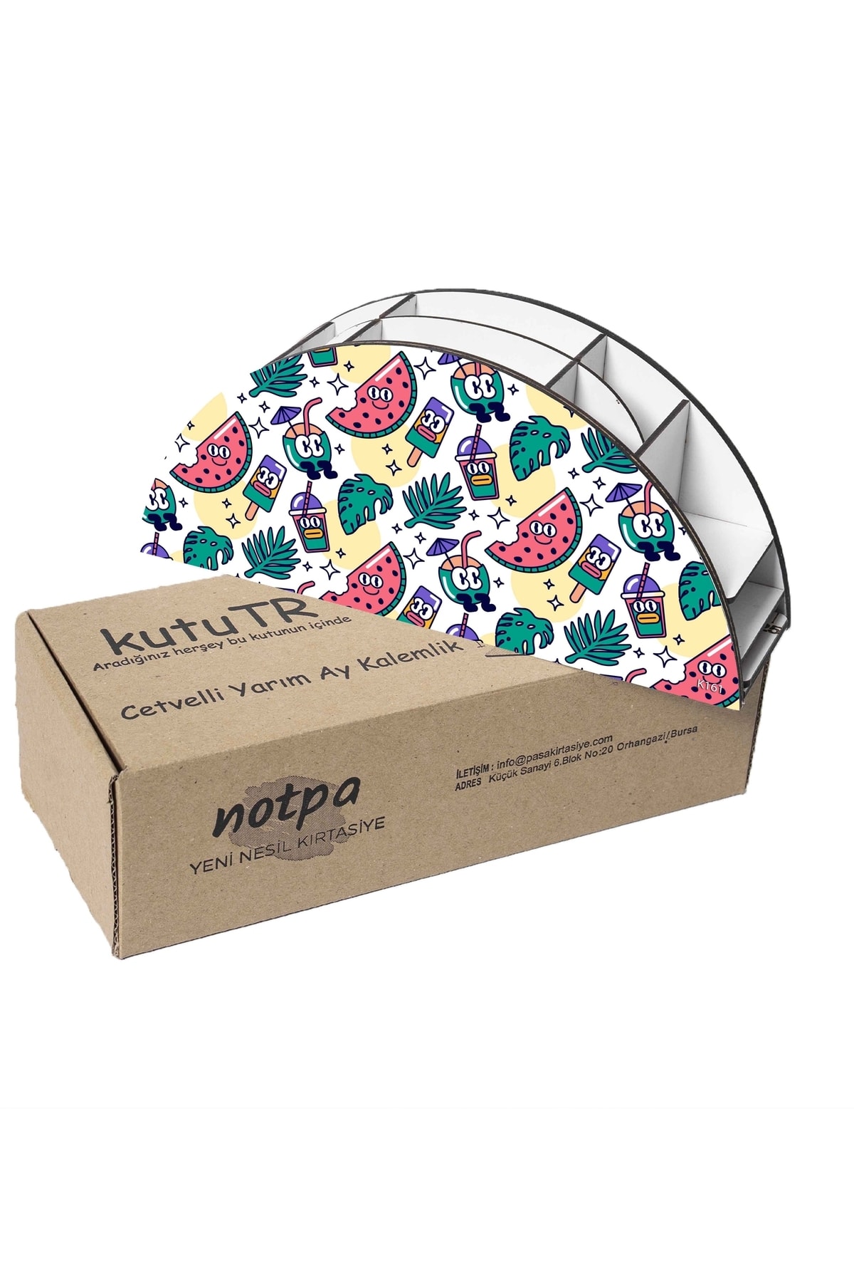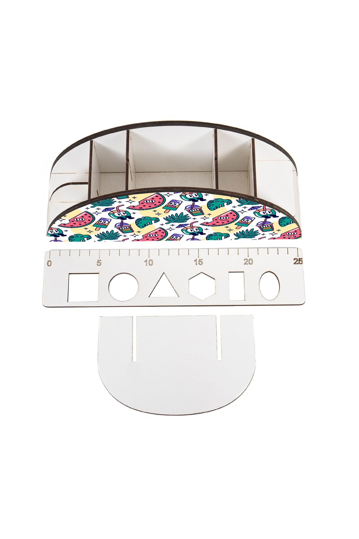 Ahşap Vip Çiçek Serisi Gökkuşağı Cetvelli Masaüstü Kalemlik Organizer Montajlı Kutulu