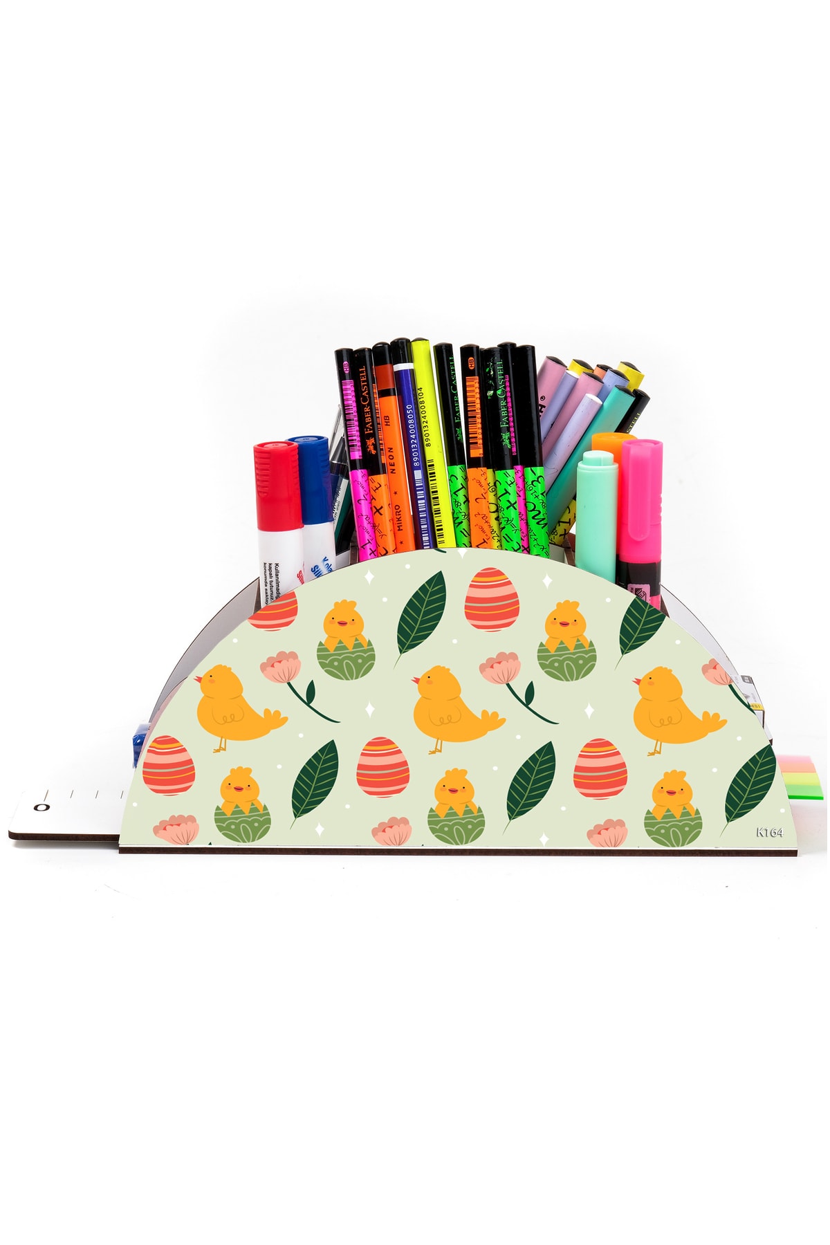 Ahşap Vip Civciv Gökkuşağı Cetvelli Masaüstü Kalemlik Organizer Vip164