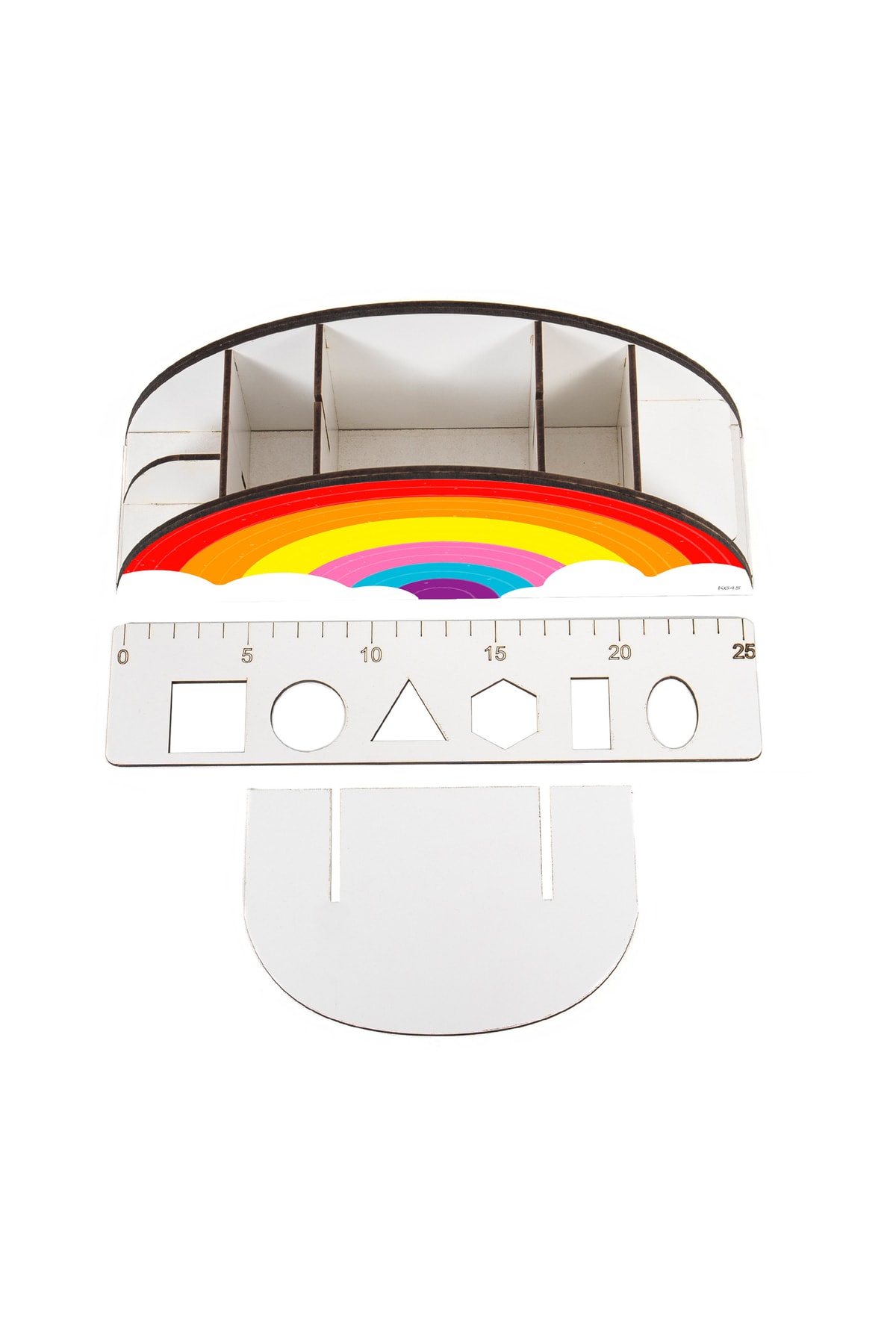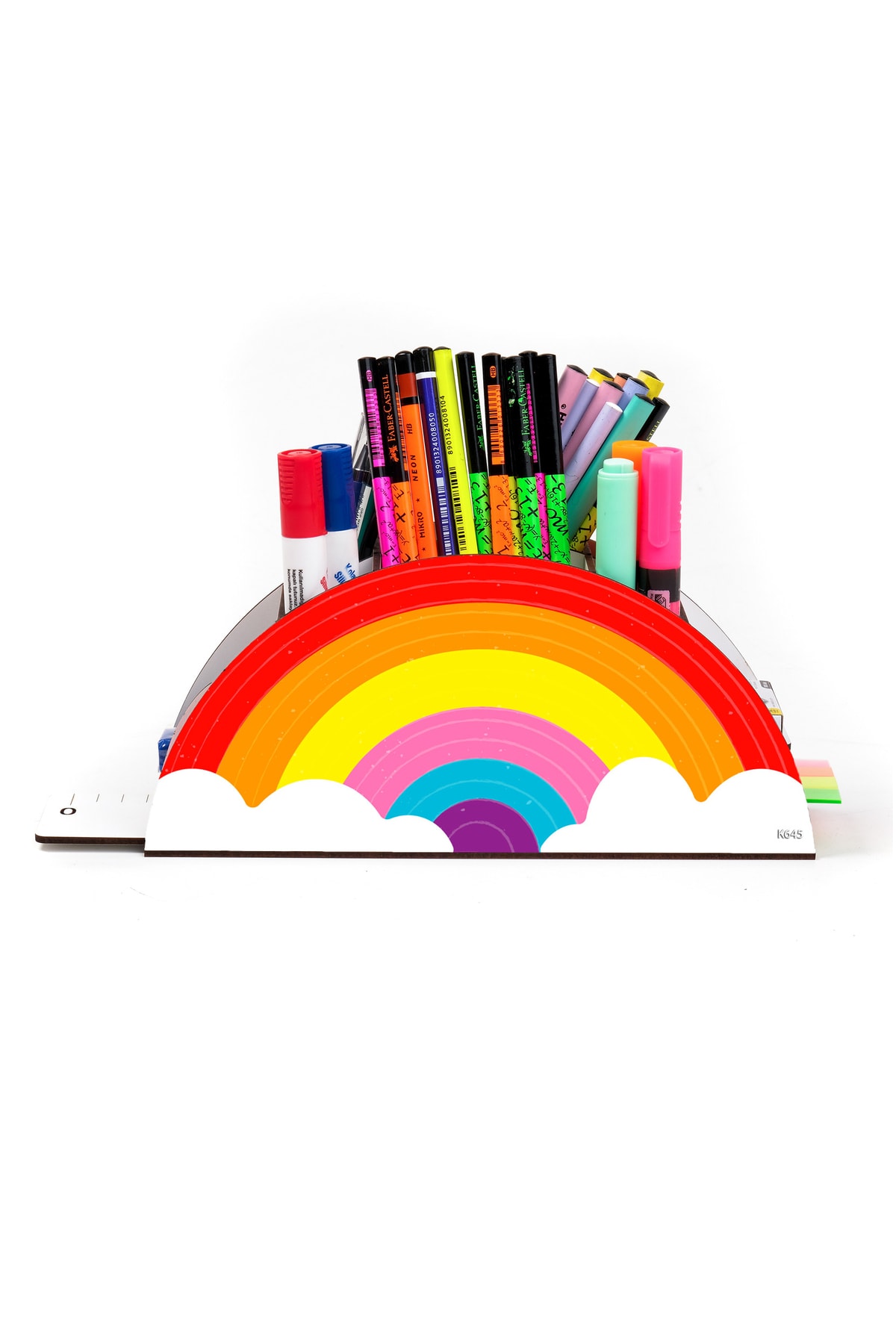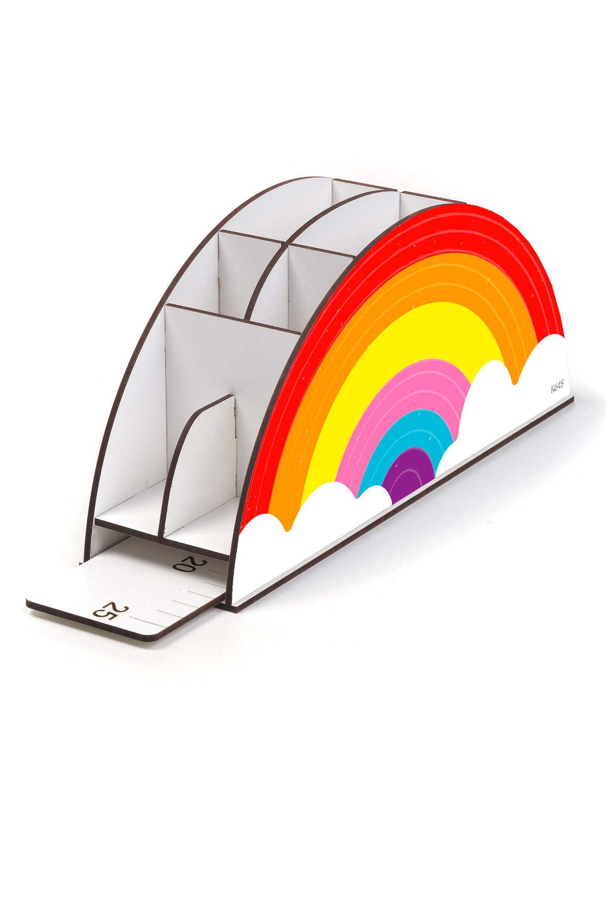 Ahşap Vip Çoçuklar Için Gökkuşağı Cetvelli Masaüstü Kalemlik Organizer Montajlı Kutulu