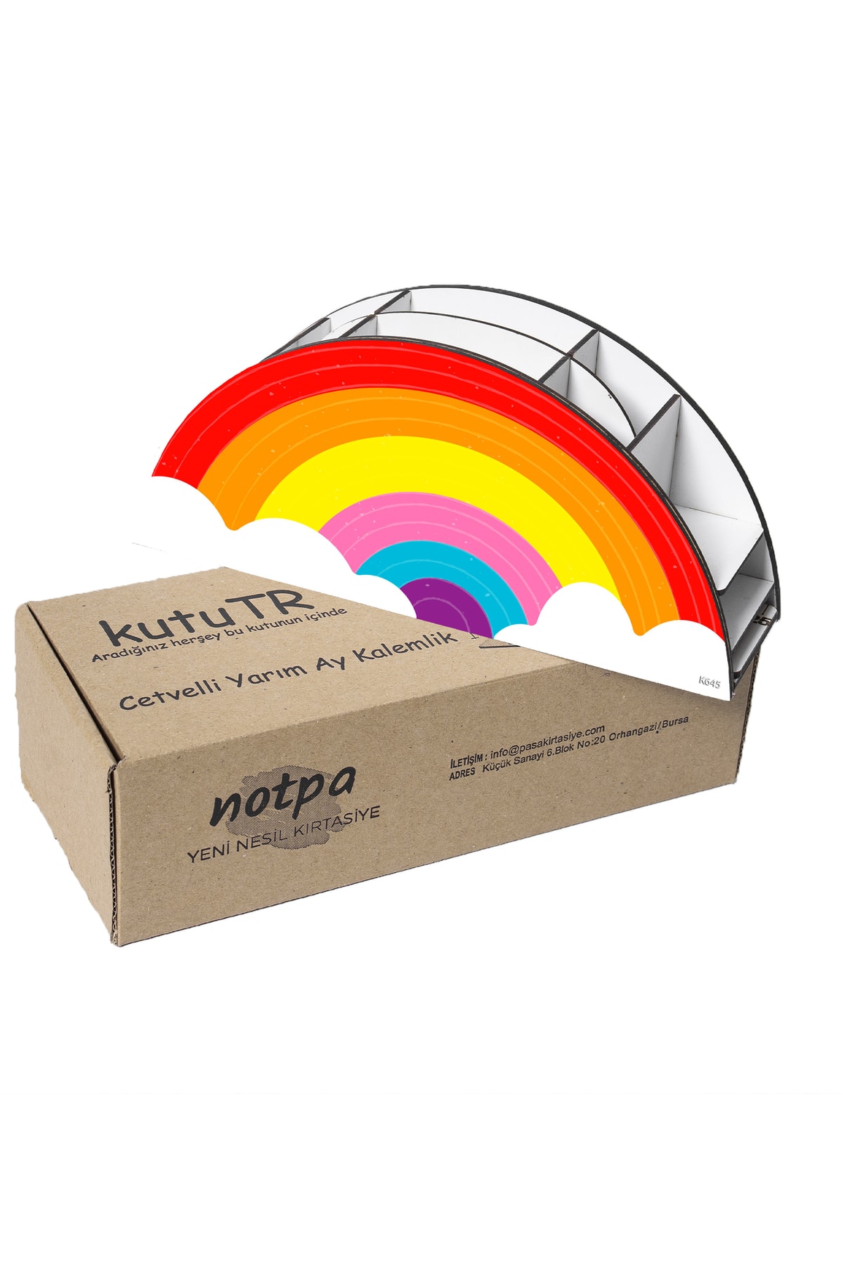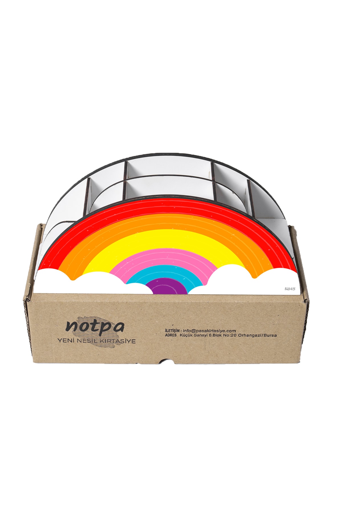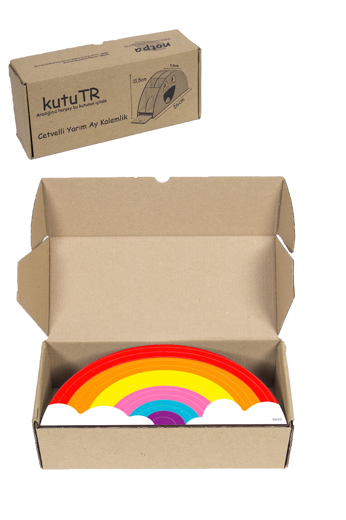 Ahşap Vip Çoçuklar Için Gökkuşağı Cetvelli Masaüstü Kalemlik Organizer Montajlı Kutulu