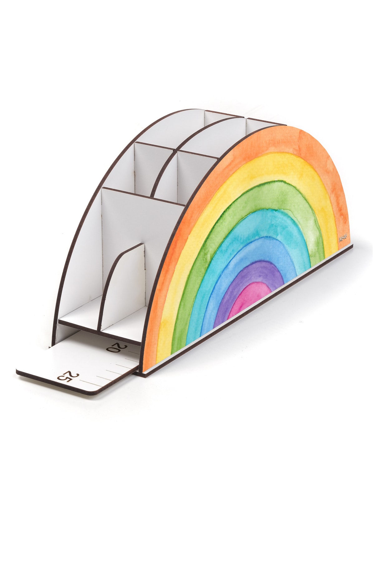 Ahşap Vip Çoçuklar Için Gökkuşağı Cetvelli Masaüstü Kalemlik Organizer Montajlı Kutulu