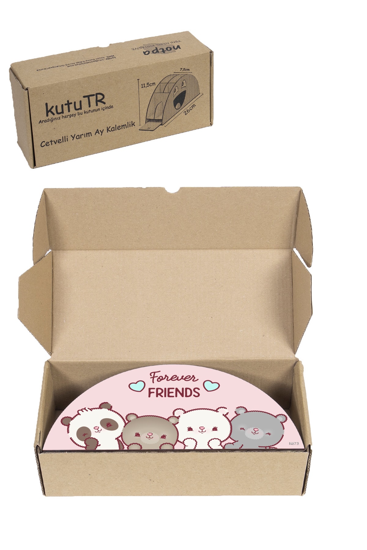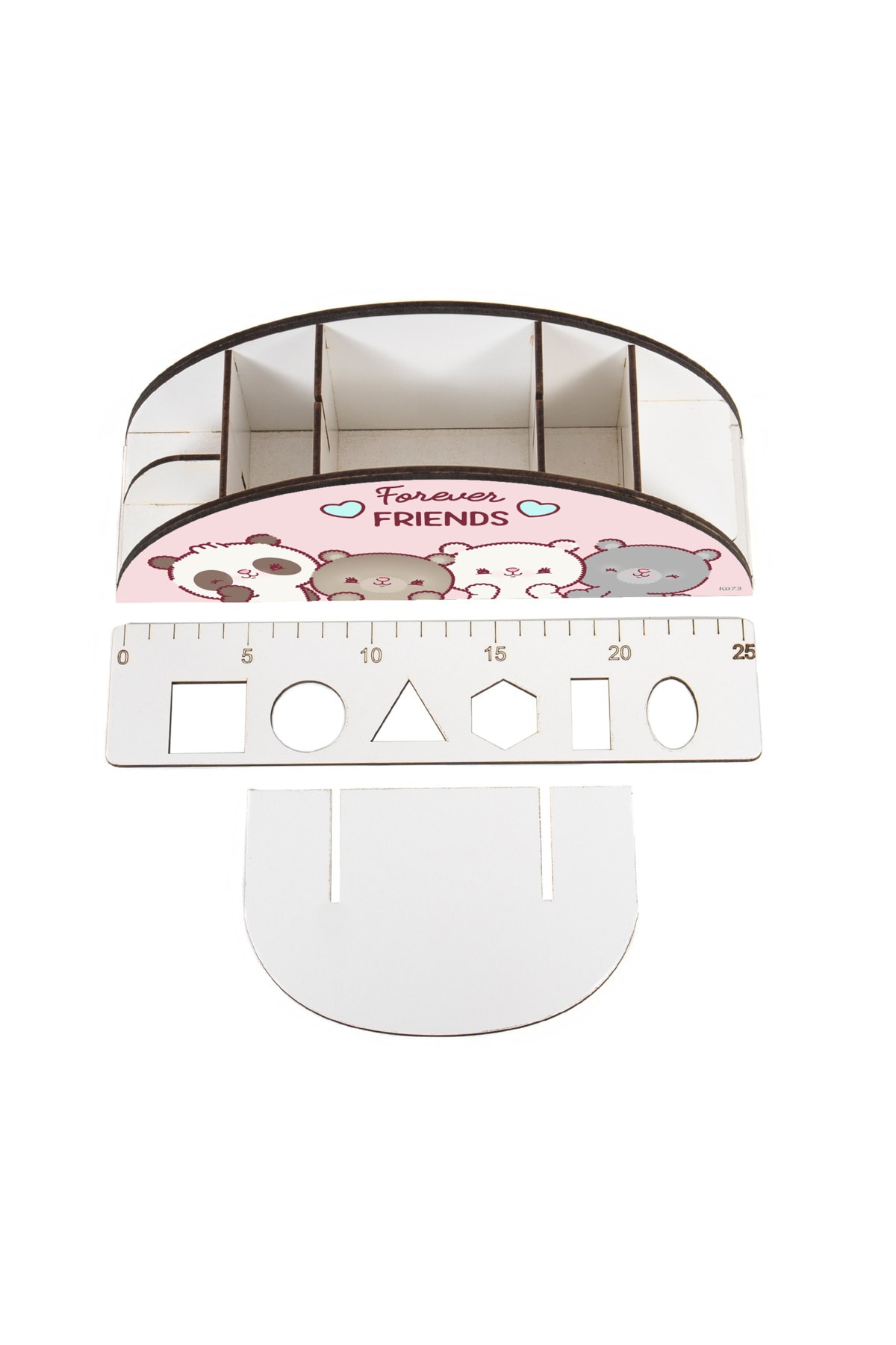 Ahşap VİP Çocuklar İçin Gökkuşağı Cetvelli Masaüstü Kalemlik Organizer Montajlı Kutulu