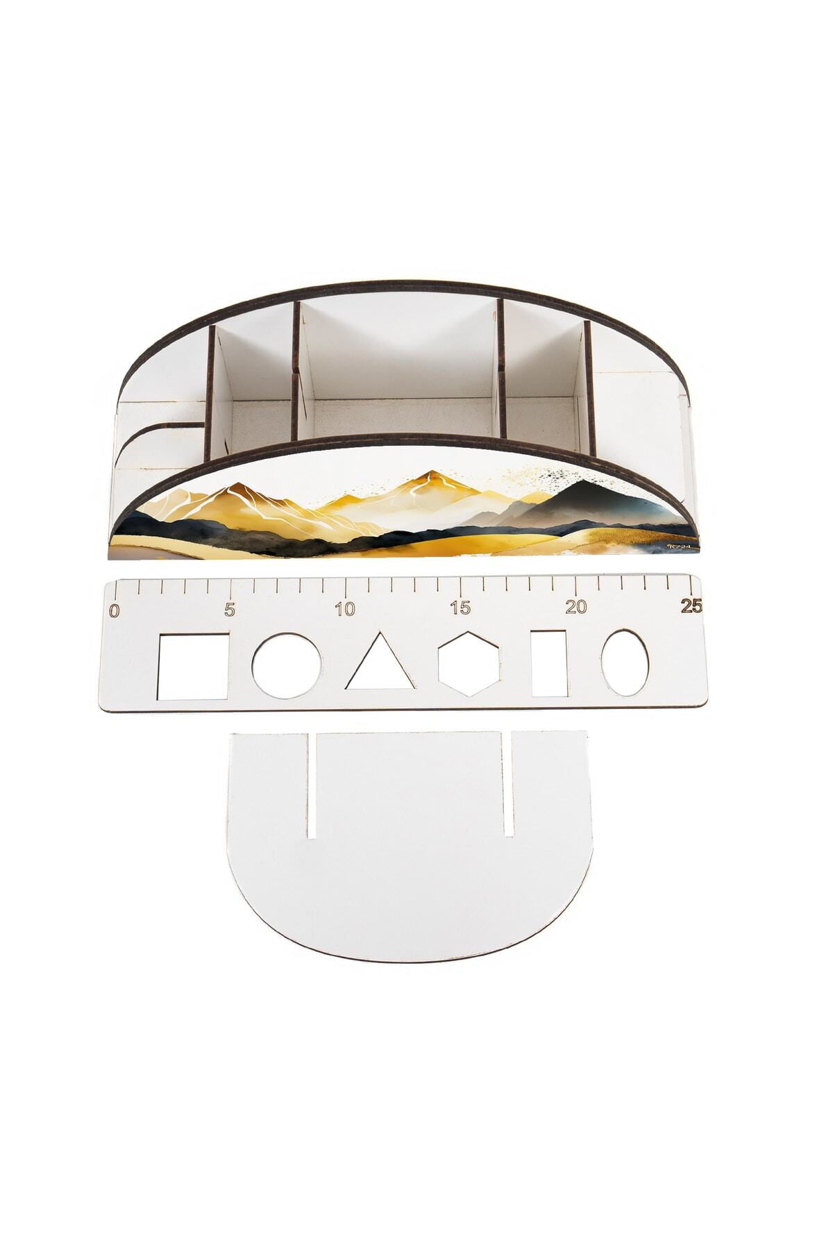 Ahşap Vip Dağ Serisi Gökkuşağı Cetvelli Masaüstü Kalemlik Organizer Montajlı Kutulu