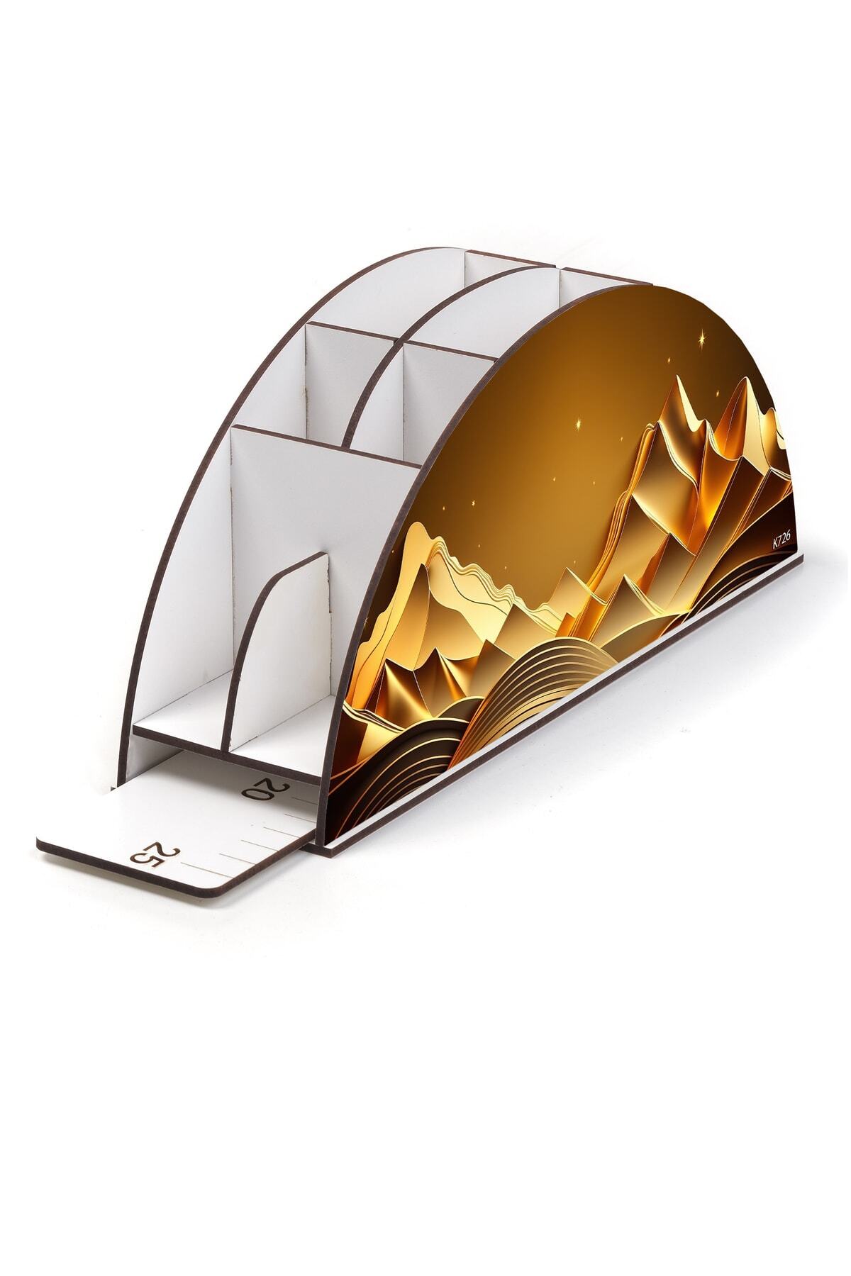Ahşap Vip Dağ Serisi Gökkuşağı Cetvelli Masaüstü Kalemlik Organizer Montajlı Kutulu