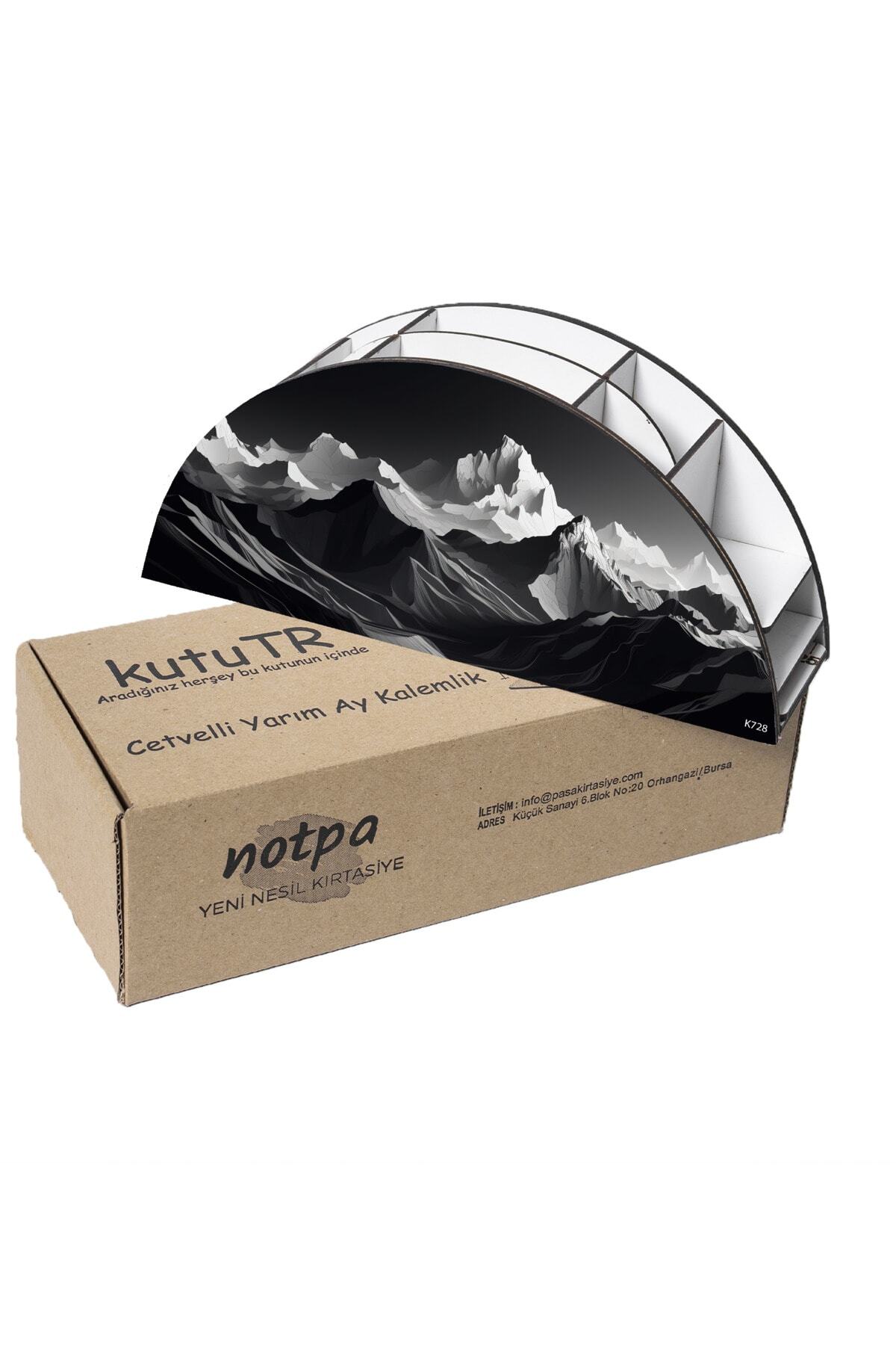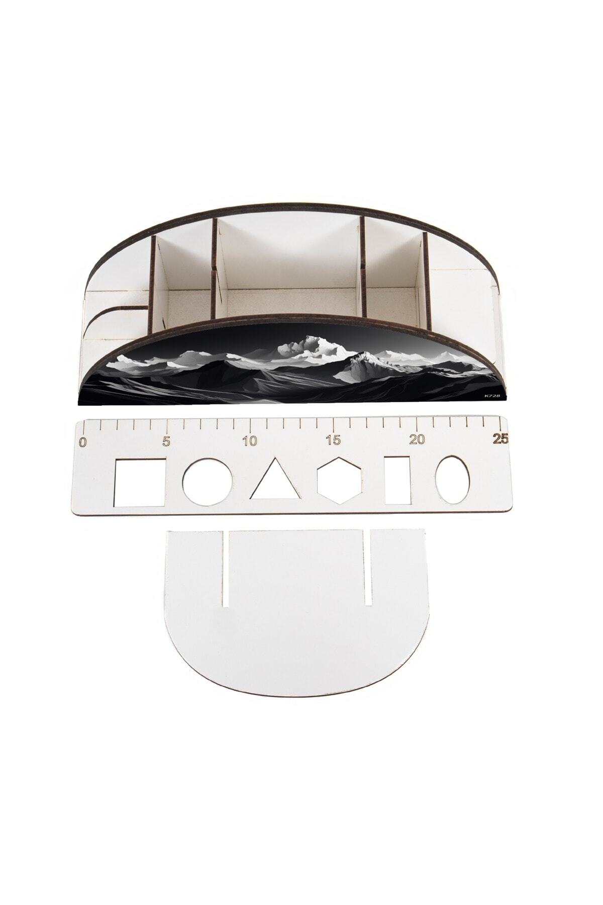 Ahşap VİP Dağ Serisi Gökkuşağı Cetvelli Masaüstü Kalemlik Organizer Montajlı Kutulu