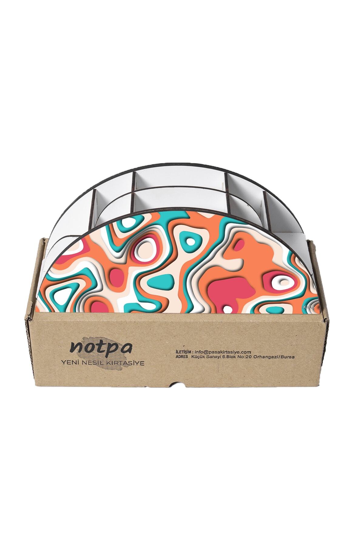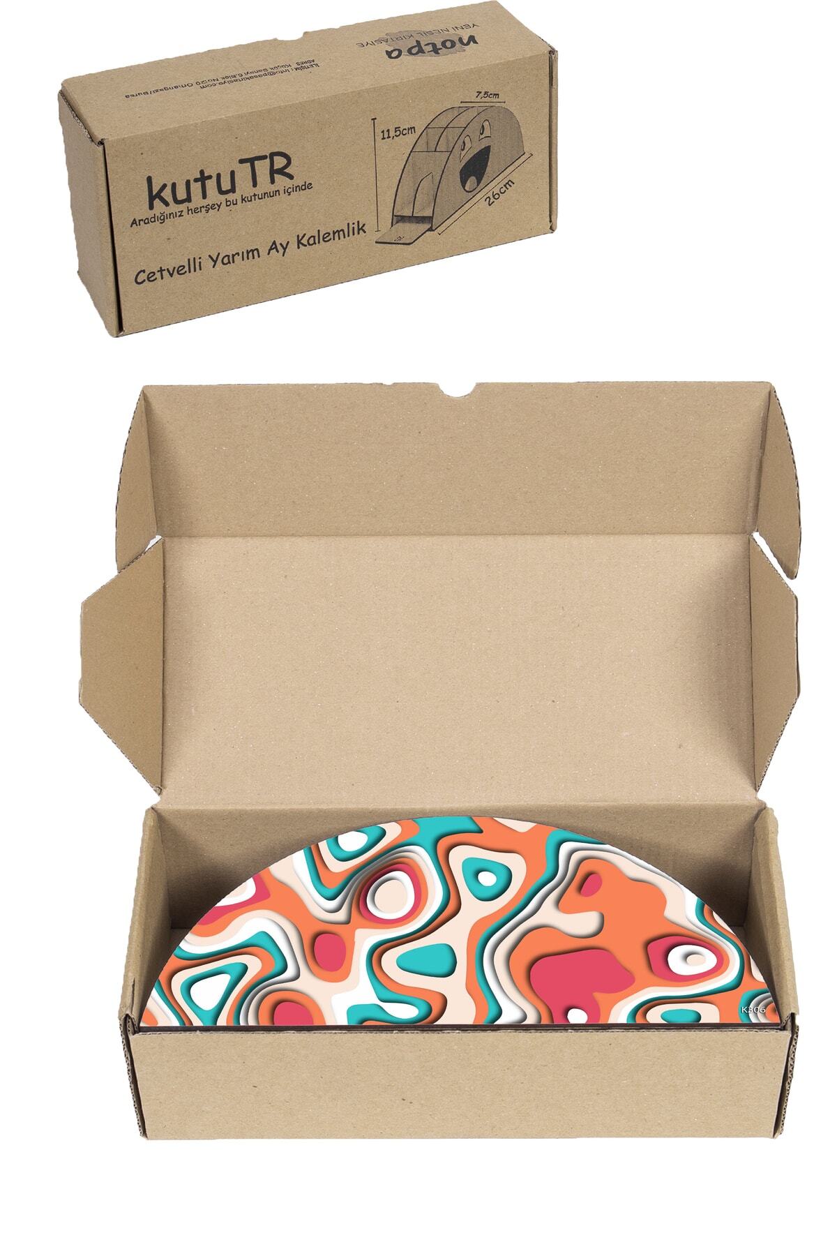 Ahşap Vip Dalgalar Gökkuşağı Cetvelli Masaüstü Kalemlik Organizer Montajlı Kutulu