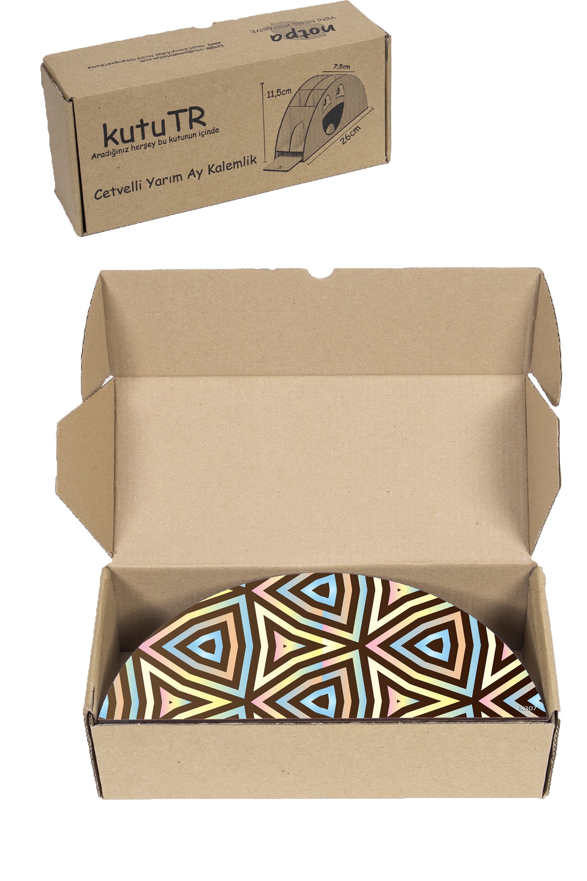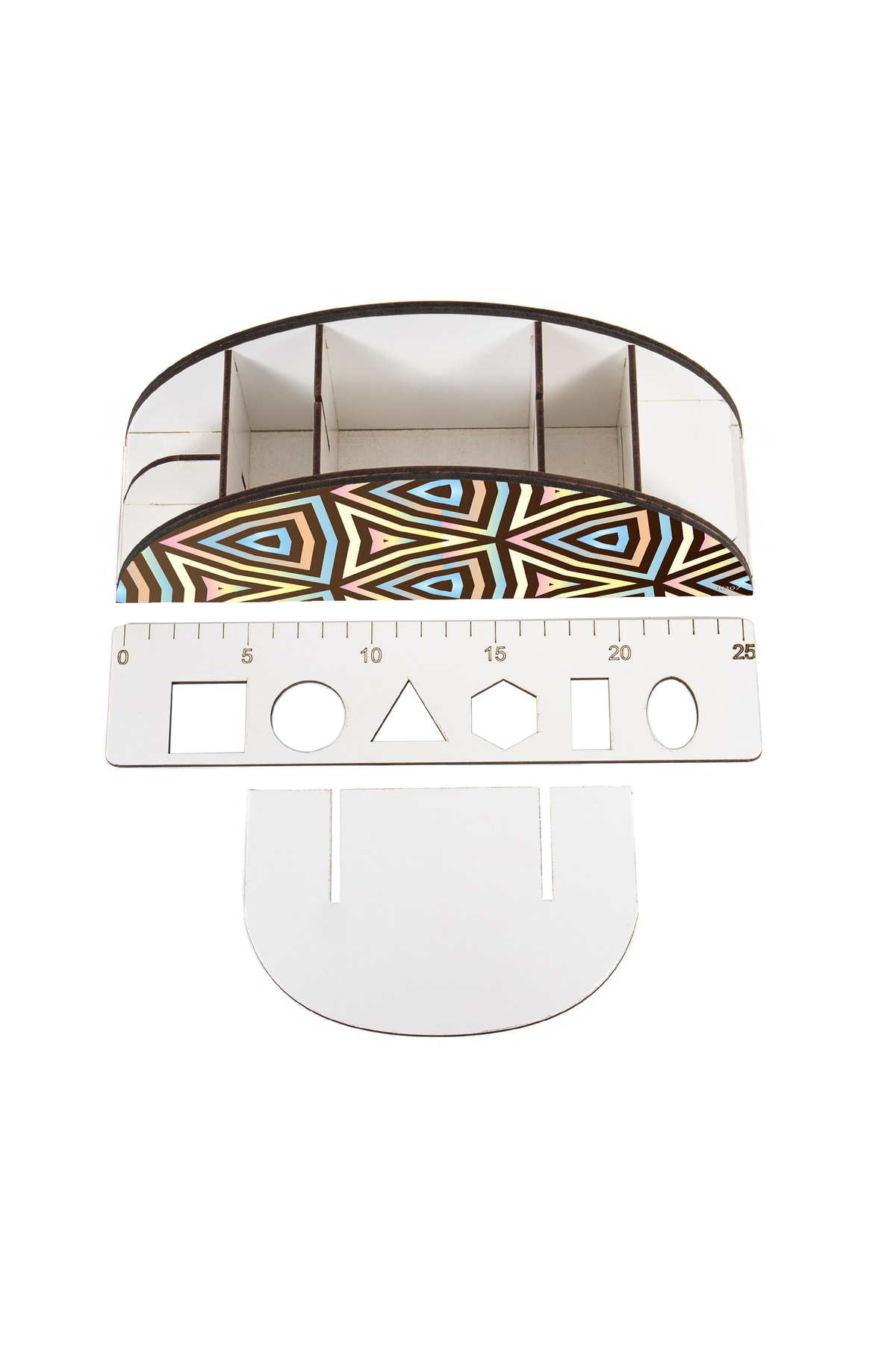 Ahşap Vip Dalgalar Gökkuşağı Cetvelli Masaüstü Kalemlik Organizer Montajlı Kutulu