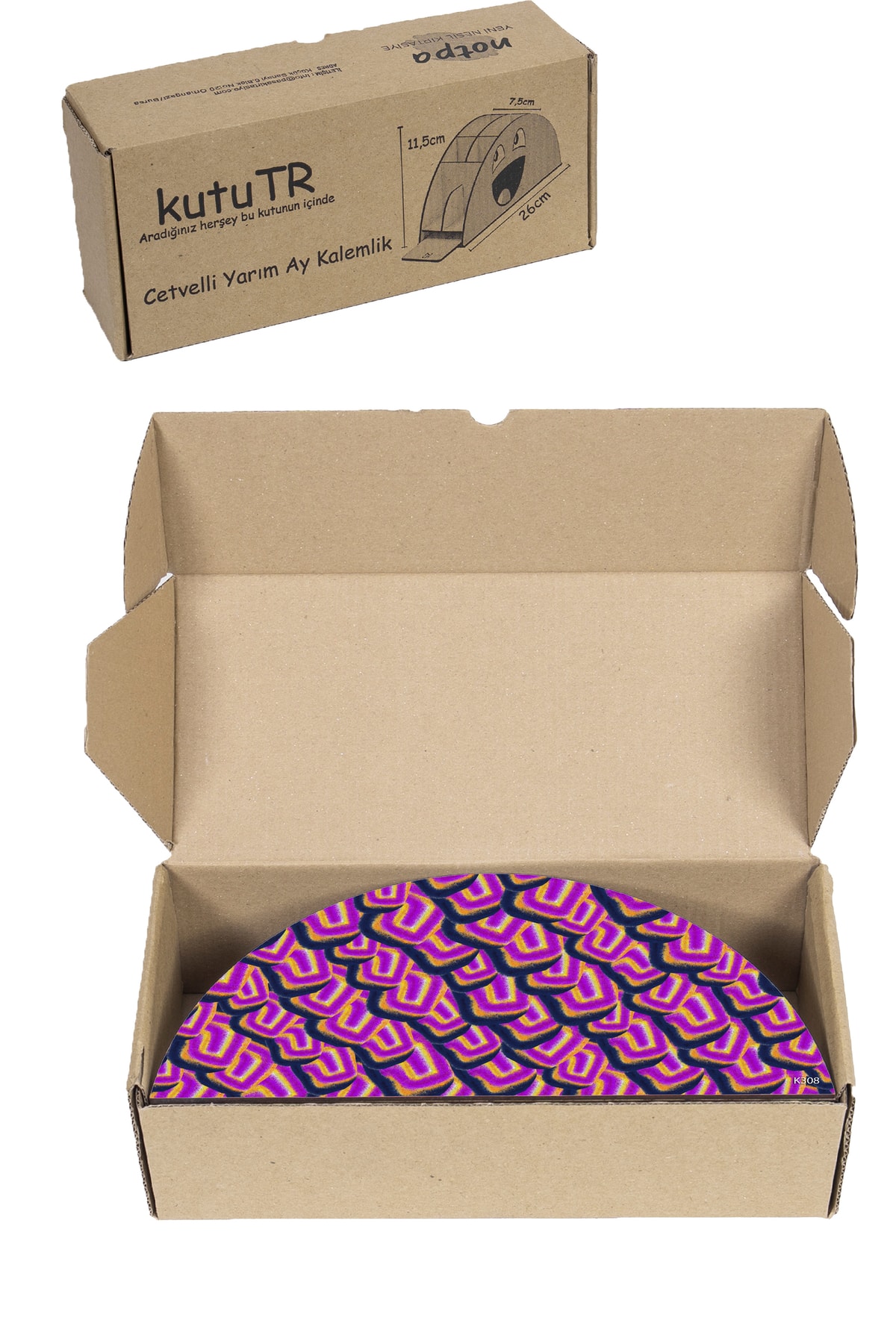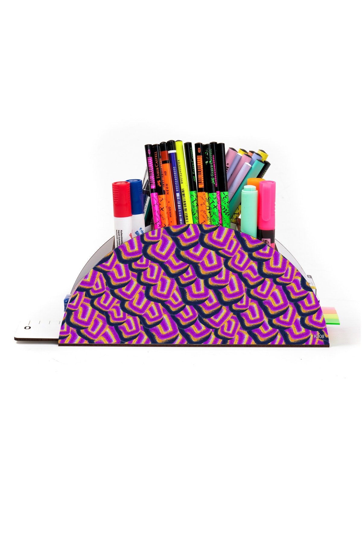 Ahşap Vip Dalgalar Gökkuşağı Cetvelli Masaüstü Kalemlik Organizer Montajlı Kutulu