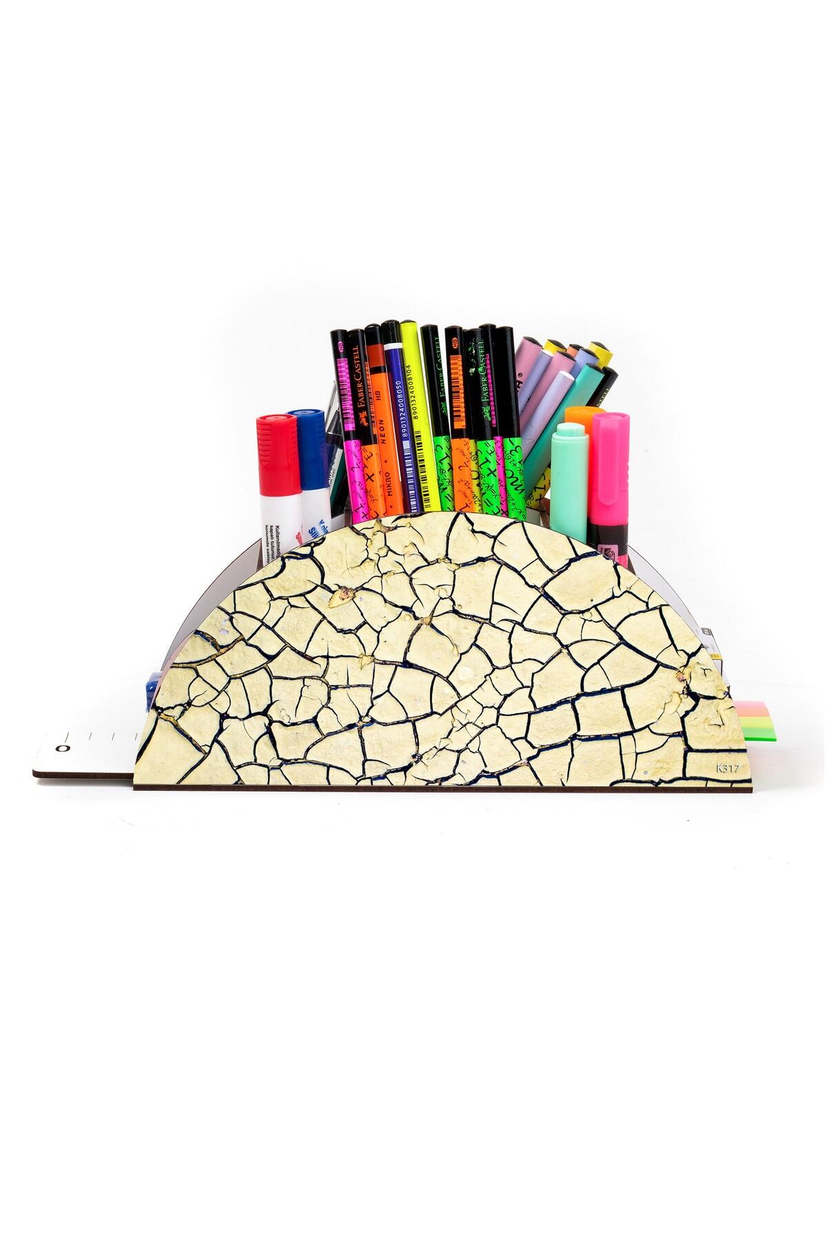 Ahşap Vip Dalgalar Gökkuşağı Cetvelli Masaüstü Kalemlik Organizer Montajlı Kutulu