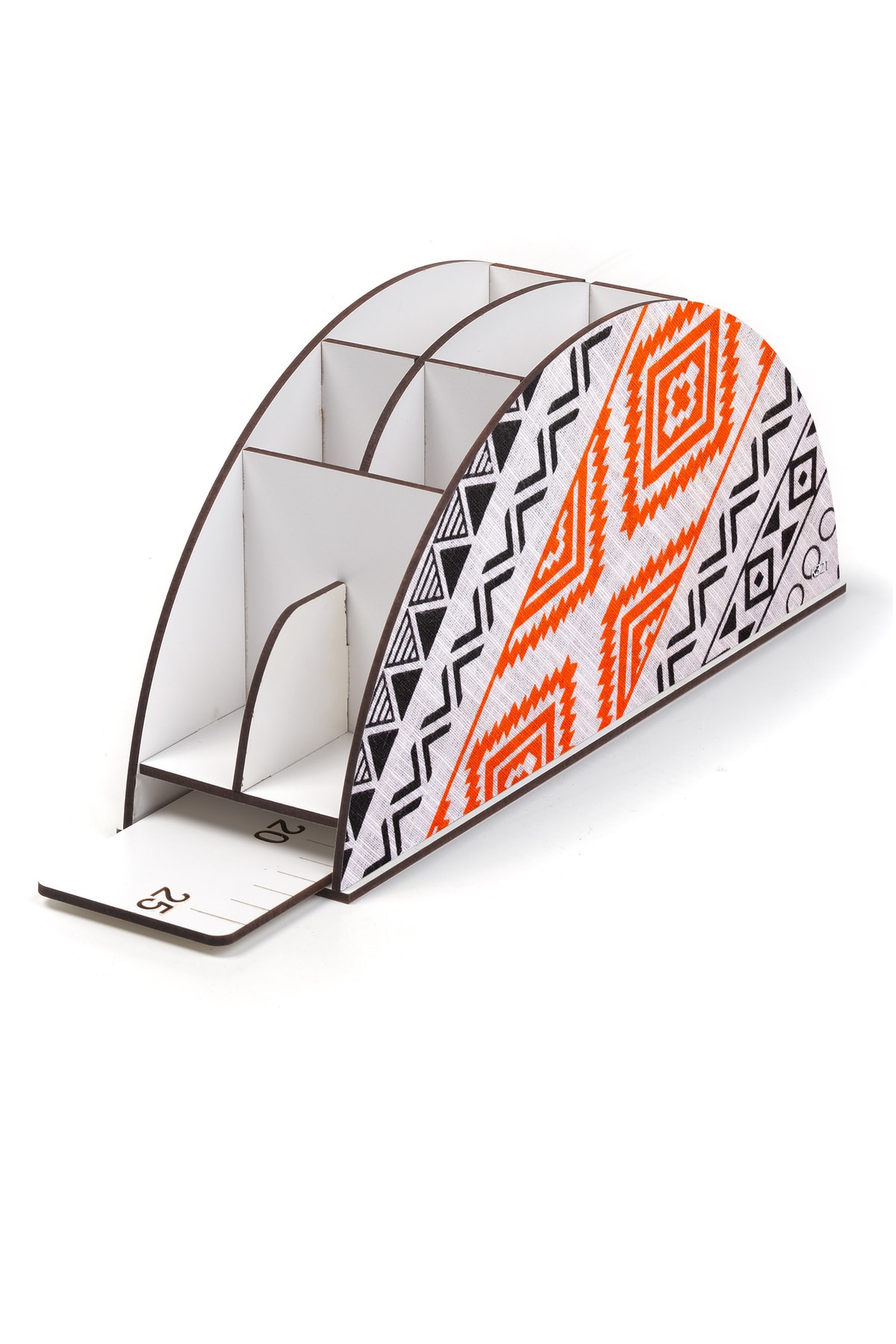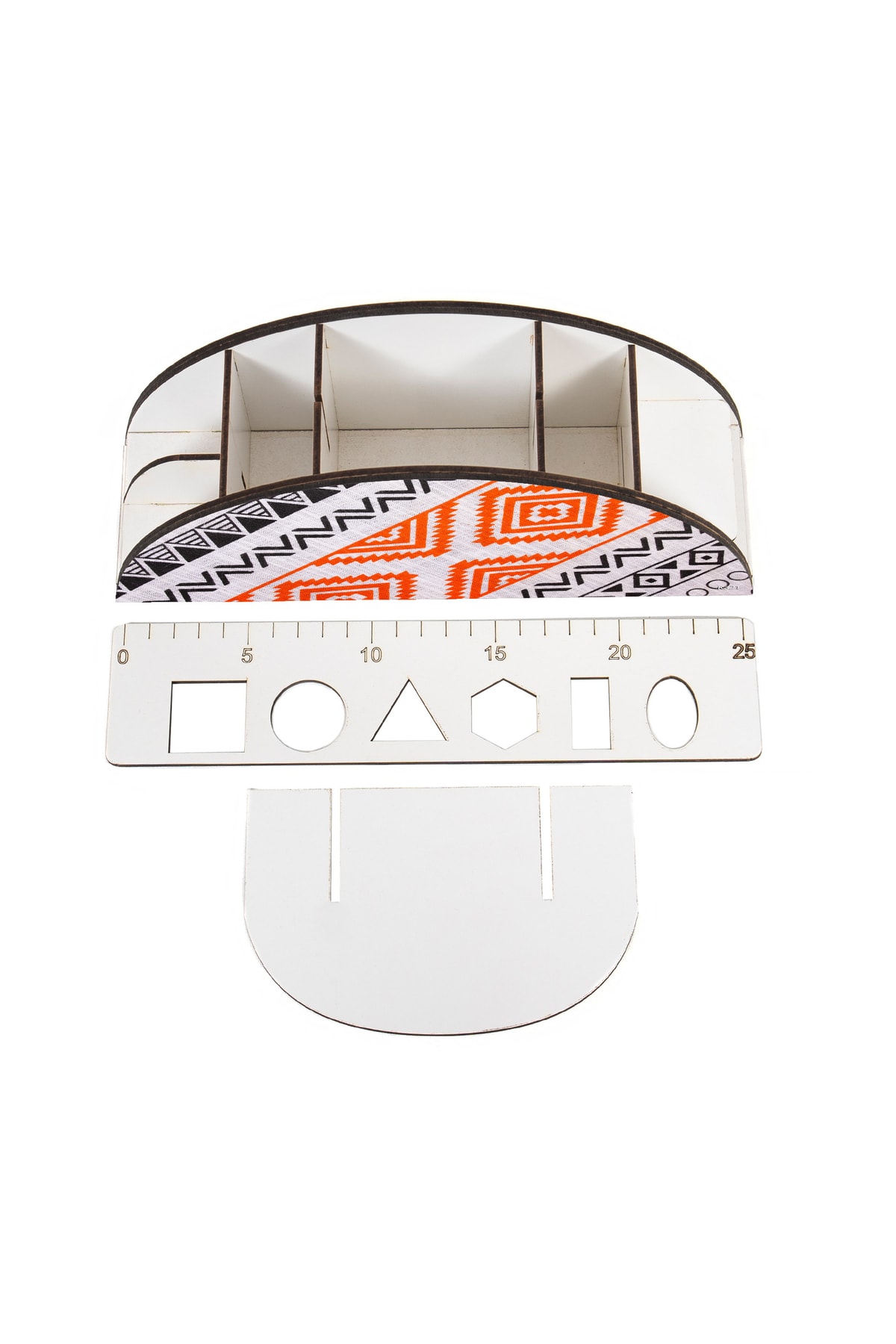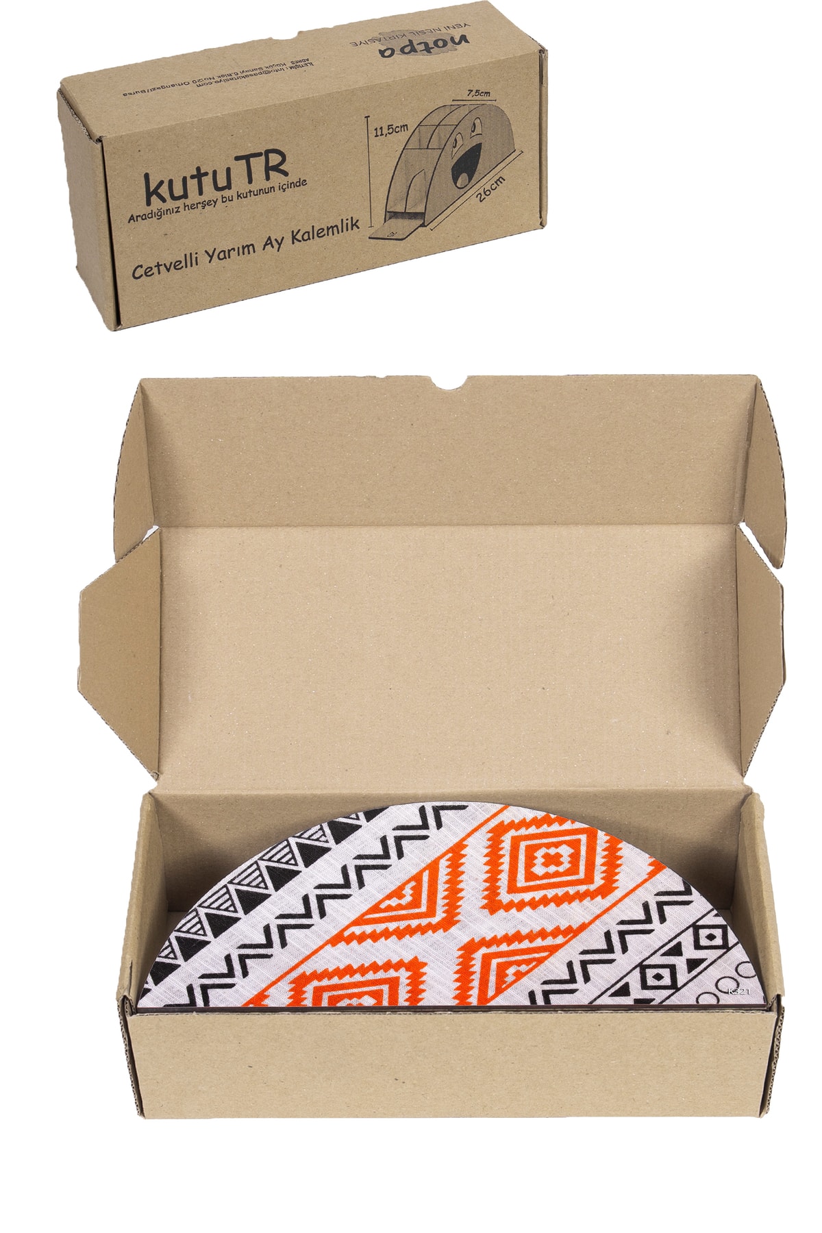 Ahşap Vip Dalgalar Gökkuşağı Cetvelli Masaüstü Kalemlik Organizer Montajlı Kutulu