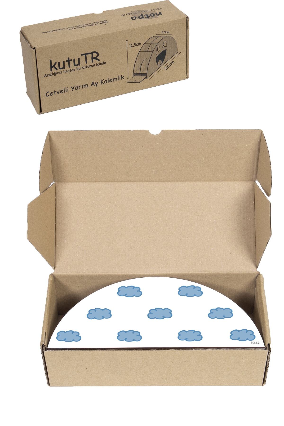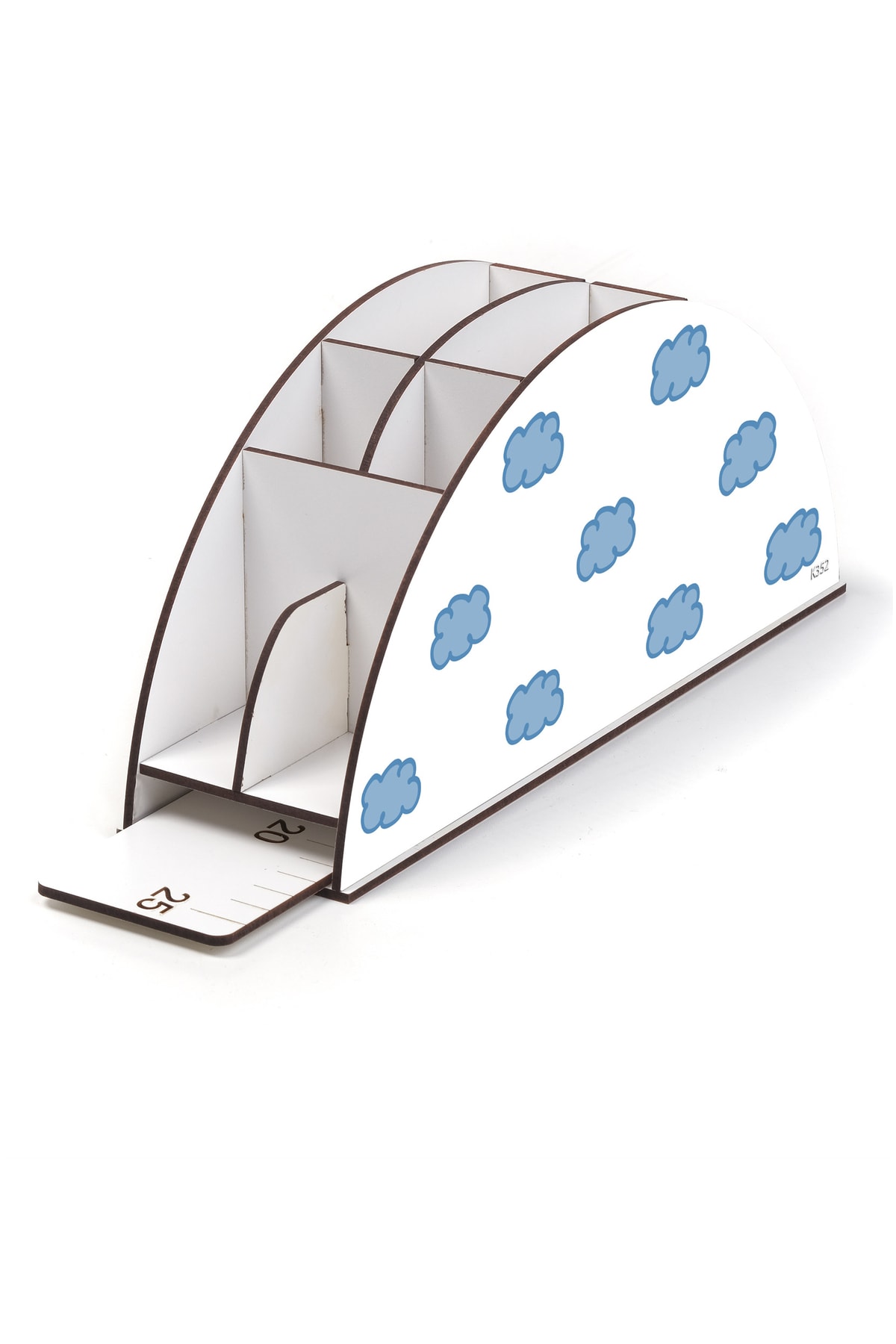 Ahşap Vip Dalgalar Gökkuşağı Cetvelli Masaüstü Kalemlik Organizer Montajlı Kutulu