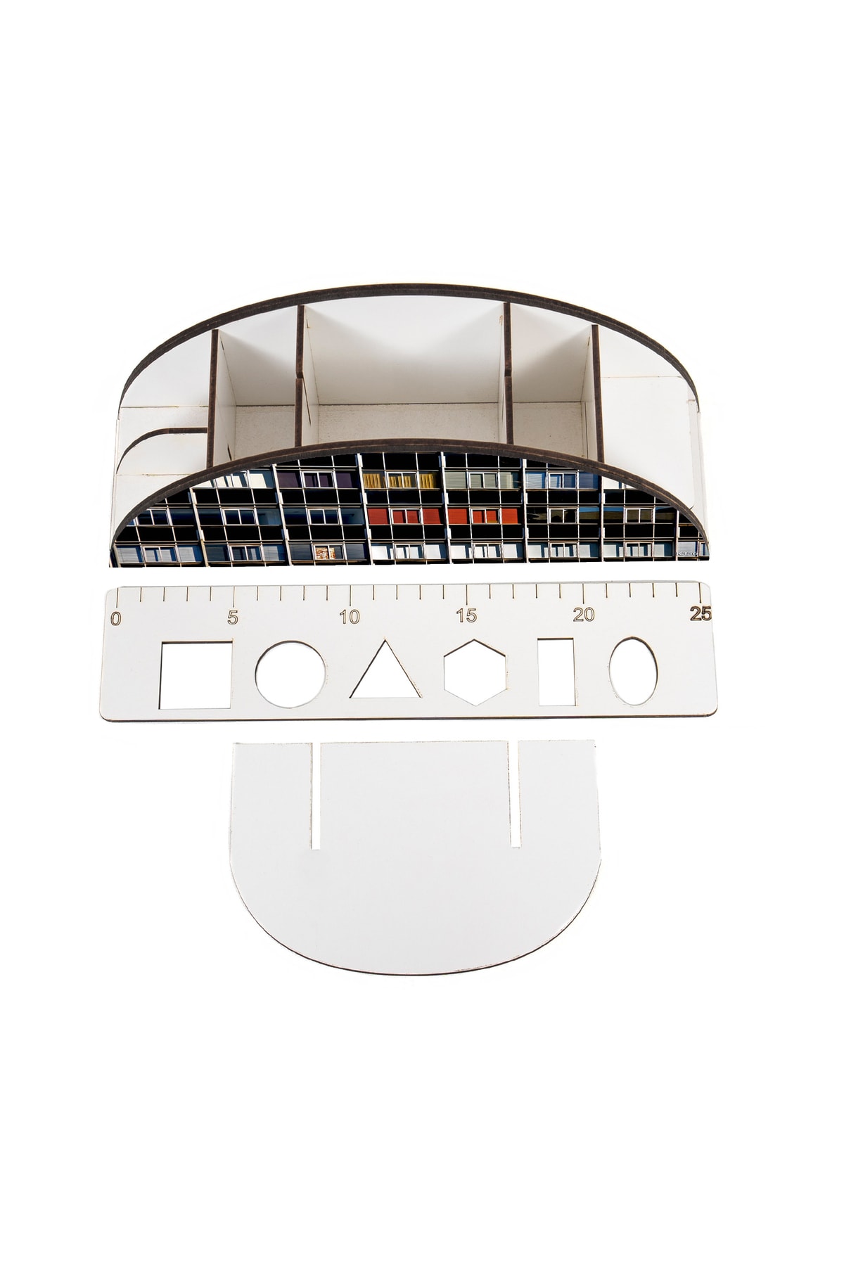 Ahşap Vip Dalgalar Gökkuşağı Cetvelli Masaüstü Kalemlik Organizer Montajlı Kutulu