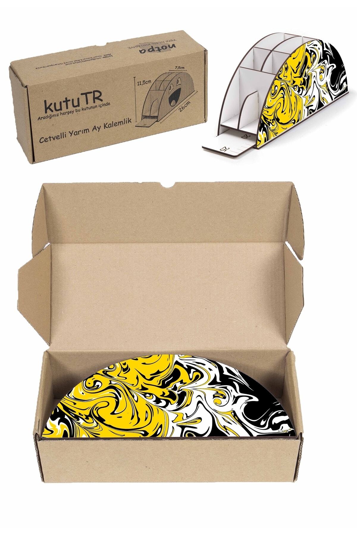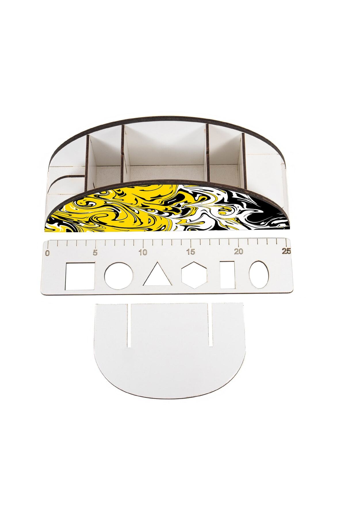 Ahşap Vip Desen Serisi Gökkuşağı Cetvelli Masaüstü Kalemlik Organizer Montajlı Kutulu