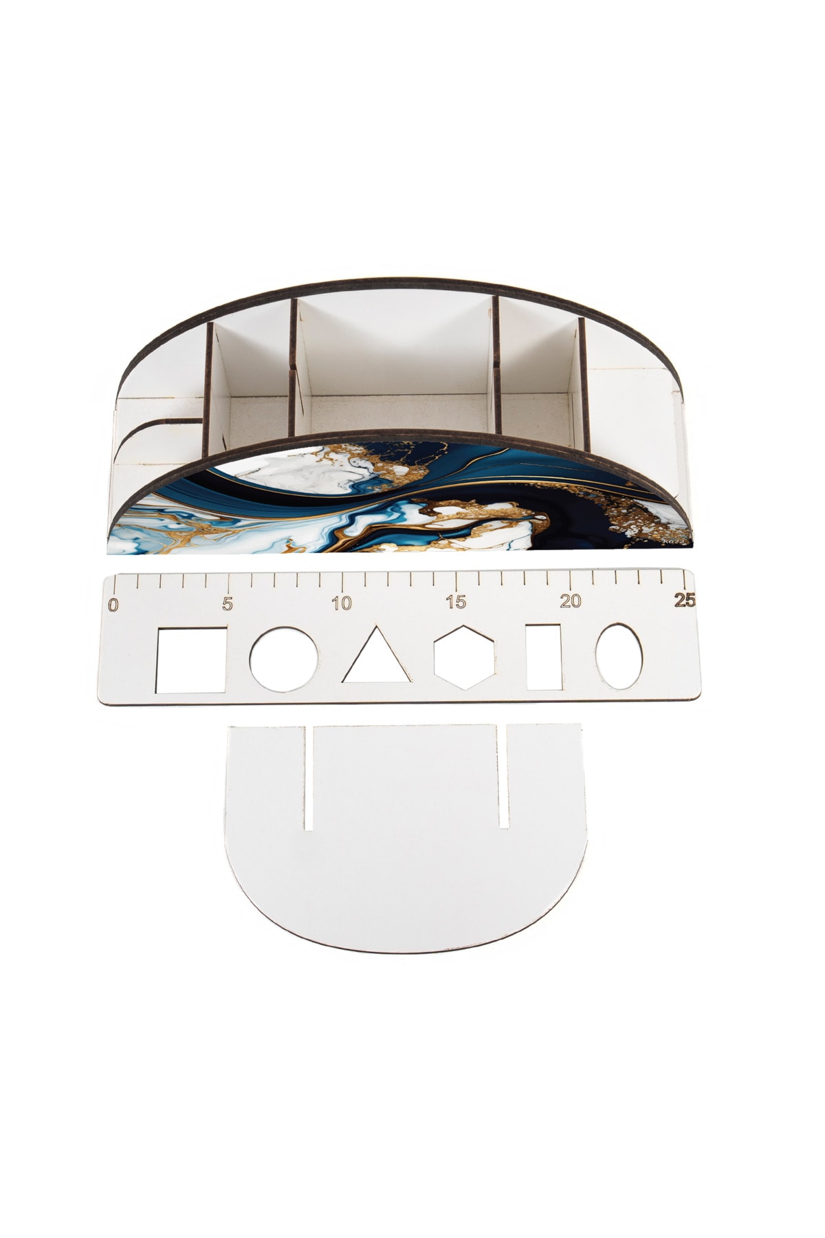 Ahşap VİP Desen Serisi Gökkuşağı Cetvelli Masaüstü Kalemlik Organizer Montajlı Kutulu