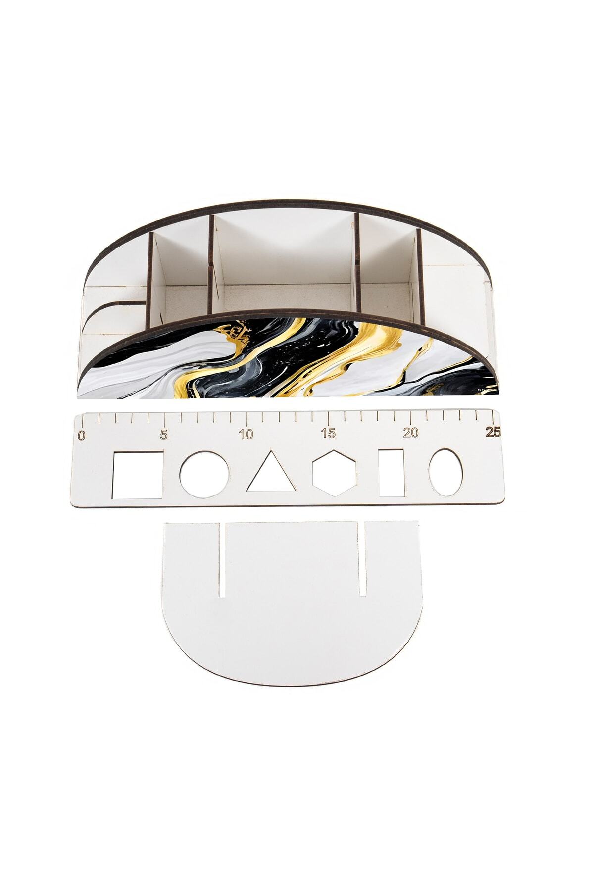 Ahşap Vip Desen Serisi Gökkuşağı Cetvelli Masaüstü Kalemlik Organizer Montajlı Kutulu