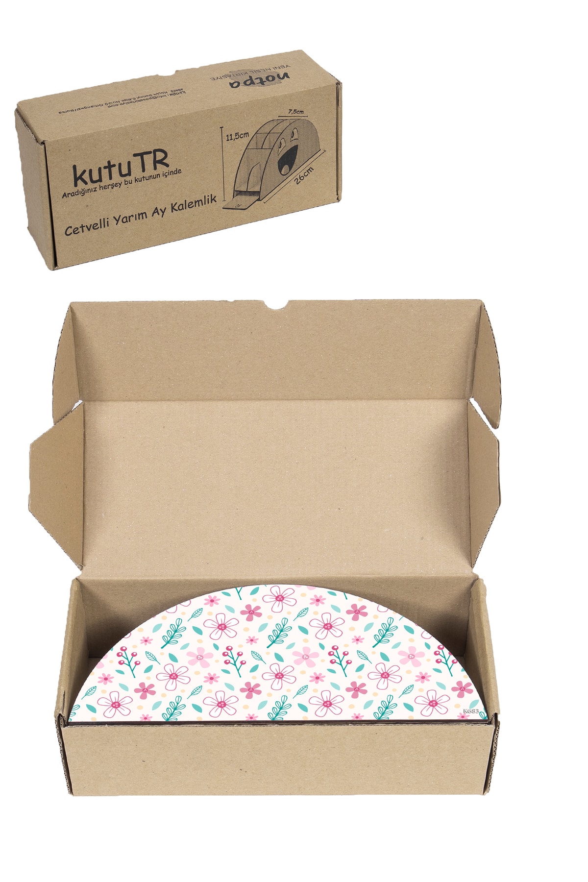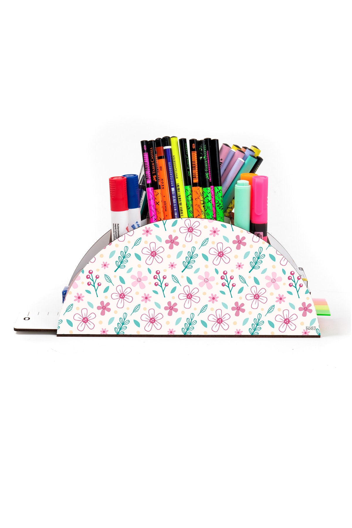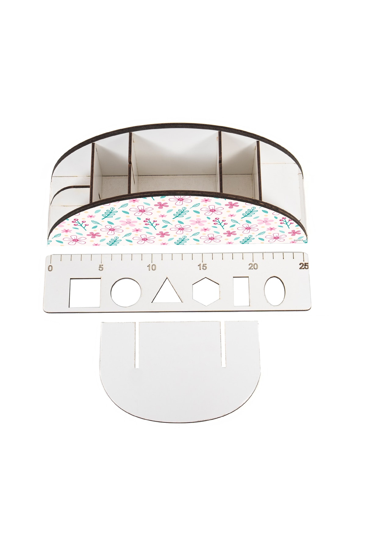Ahşap Vip Desen Serisi Gökkuşağı Cetvelli Masaüstü Kalemlik Organizer Montajlı Kutulu