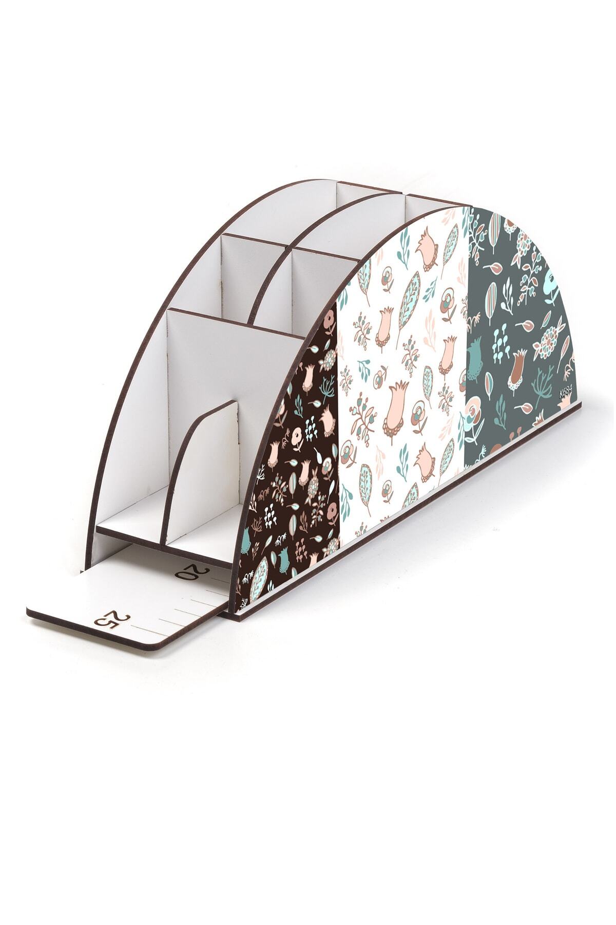 Ahşap Vip Desen Serisi Gökkuşağı Cetvelli Masaüstü Kalemlik Organizer Montajlı Kutulu