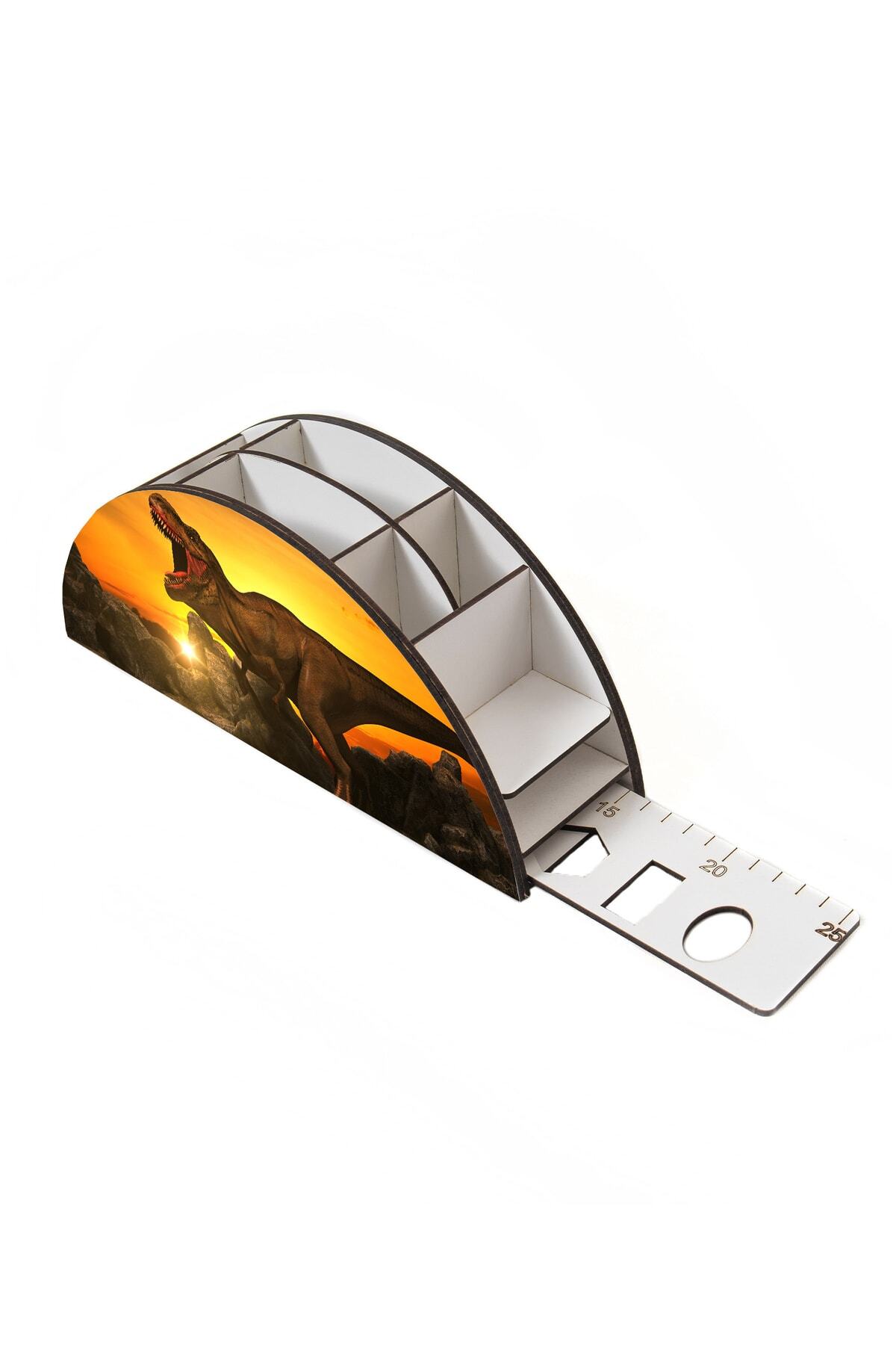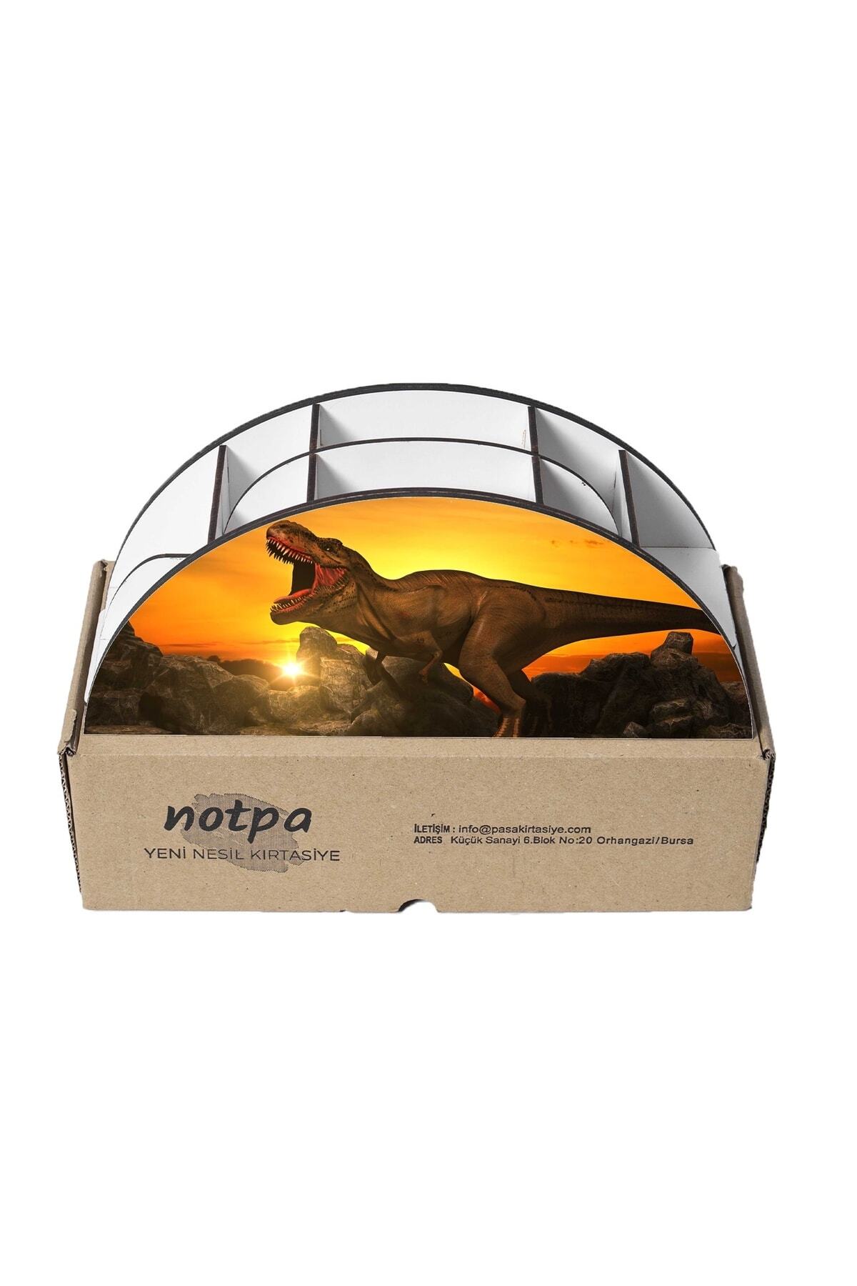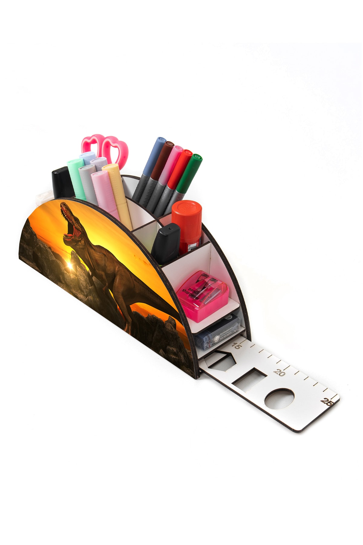 Ahşap Vip Dinazor Seri Gökkuşağı Cetvelli Masaüstü Kalemlik Çocuklar Için Organizer Montajlı Kutulu