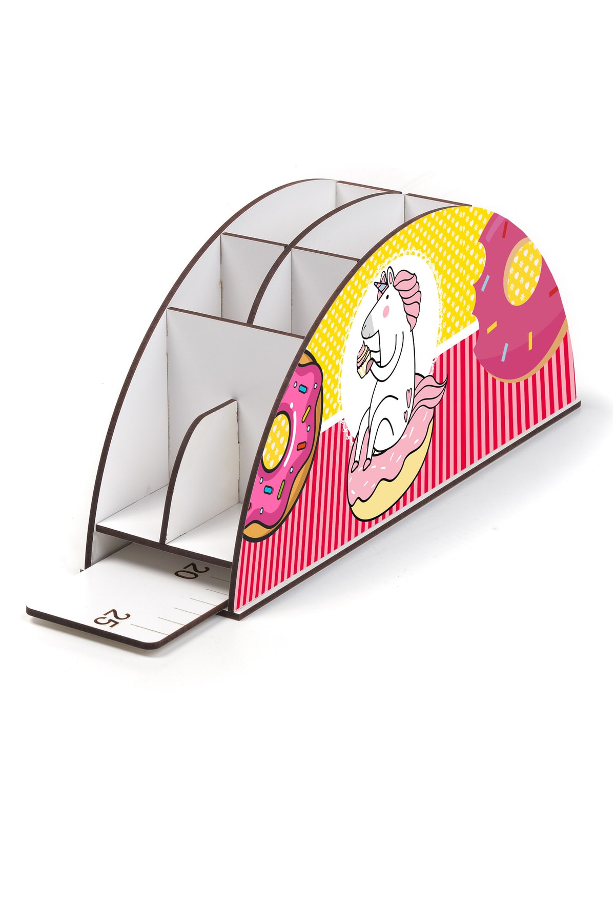 Ahşap Vip Donut Serisi Gökkuşağı Cetvelli Masaüstü Kalemlik Çocuklar Için Organizer Montajlı Kutulu