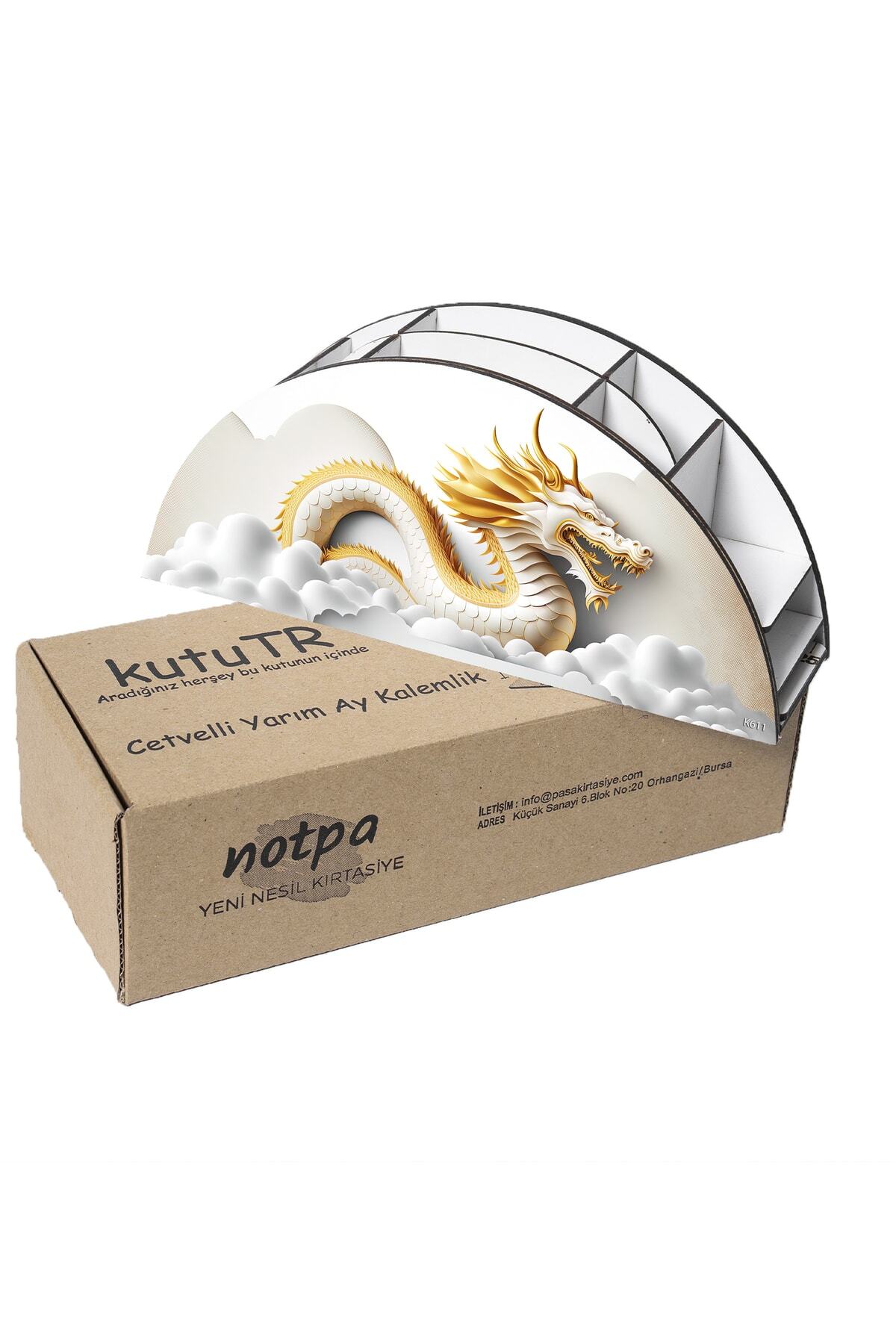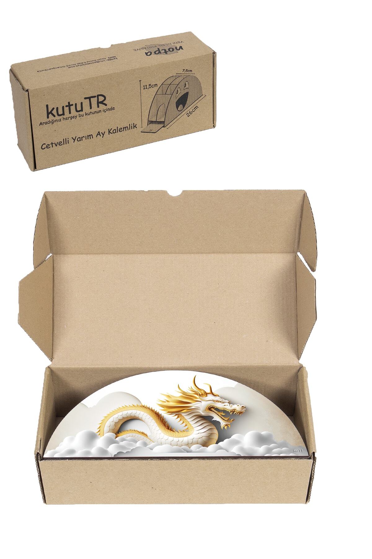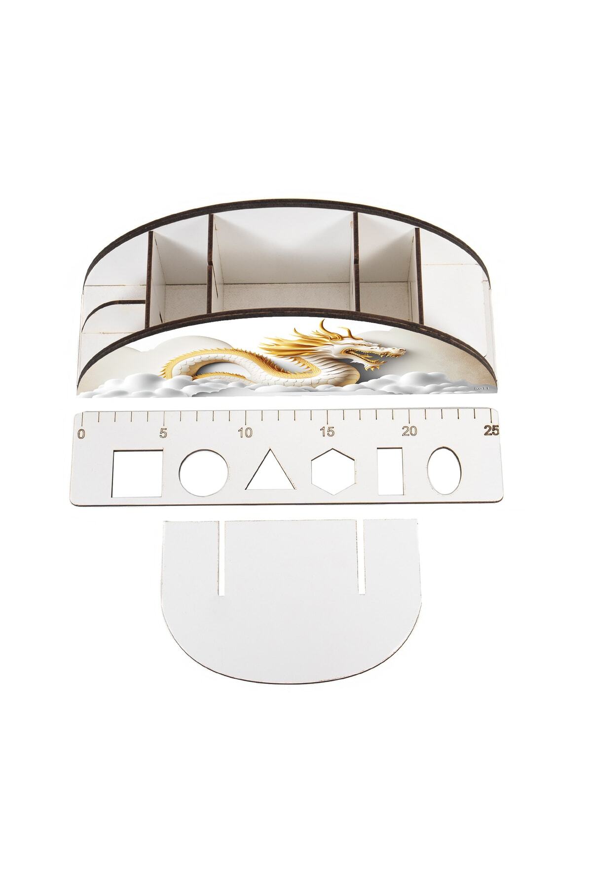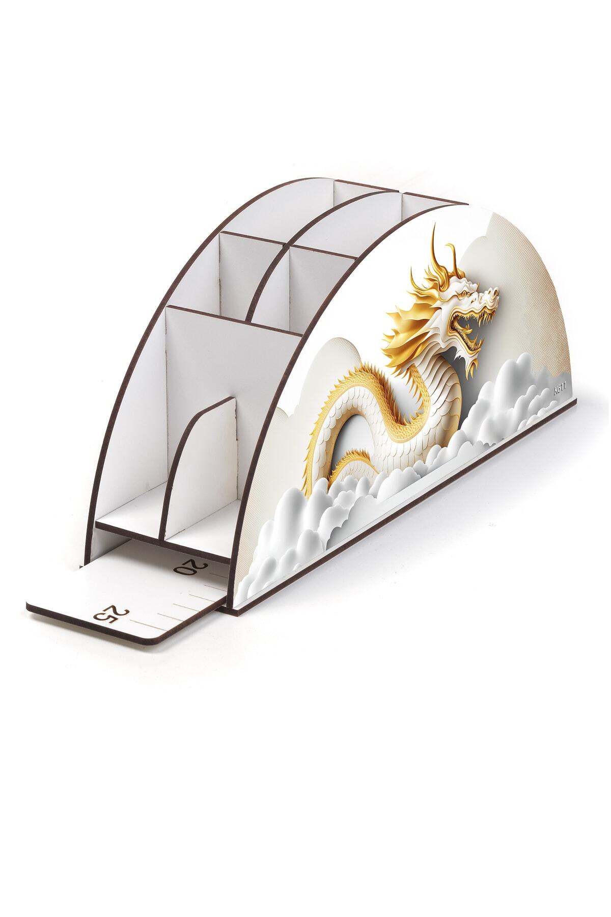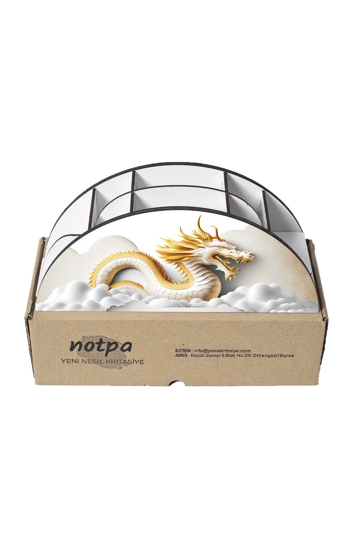 Ahşap Vip Ejderha ve Dinazor Serisi Gökkuşağı Cetvelli Masaüstü Kalemlik Organizer Montajlı Kutulu