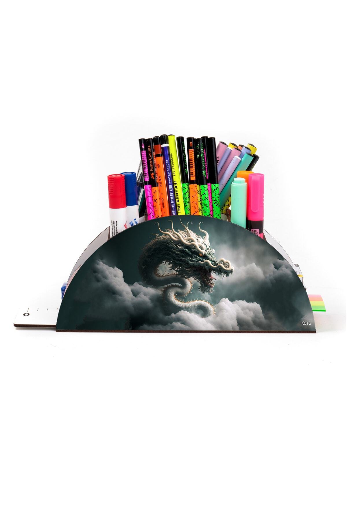 Ahşap Vip Ejderha Ve Dinazor Serisi Gökkuşağı Cetvelli Masaüstü Kalemlik Organizer Montajlı Kutulu