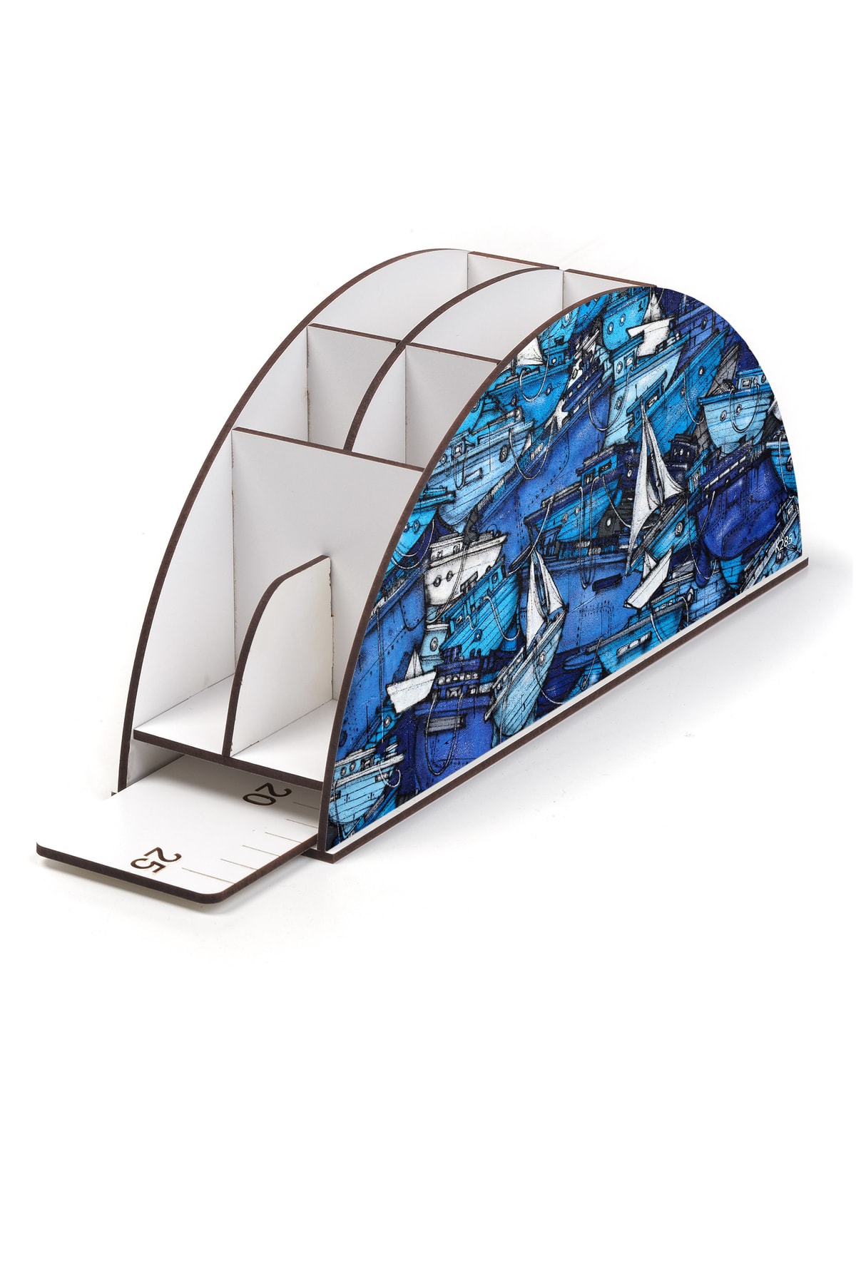 Ahşap Vip Emoji Serisi Gökkuşağı Cetvelli Masaüstü Kalemlik Organizer Montajlı Kutulu