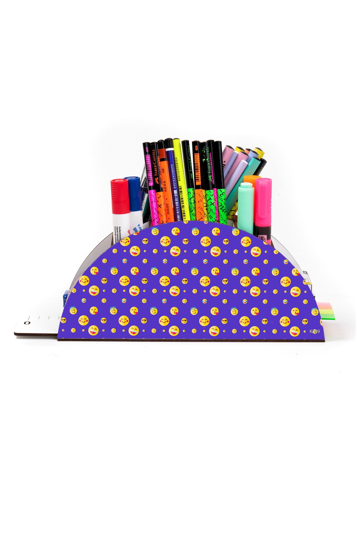 Ahşap Vip Emoji Serisi Gökkuşağı Cetvelli Masaüstü Kalemlik Organizer Montajlı Kutulu